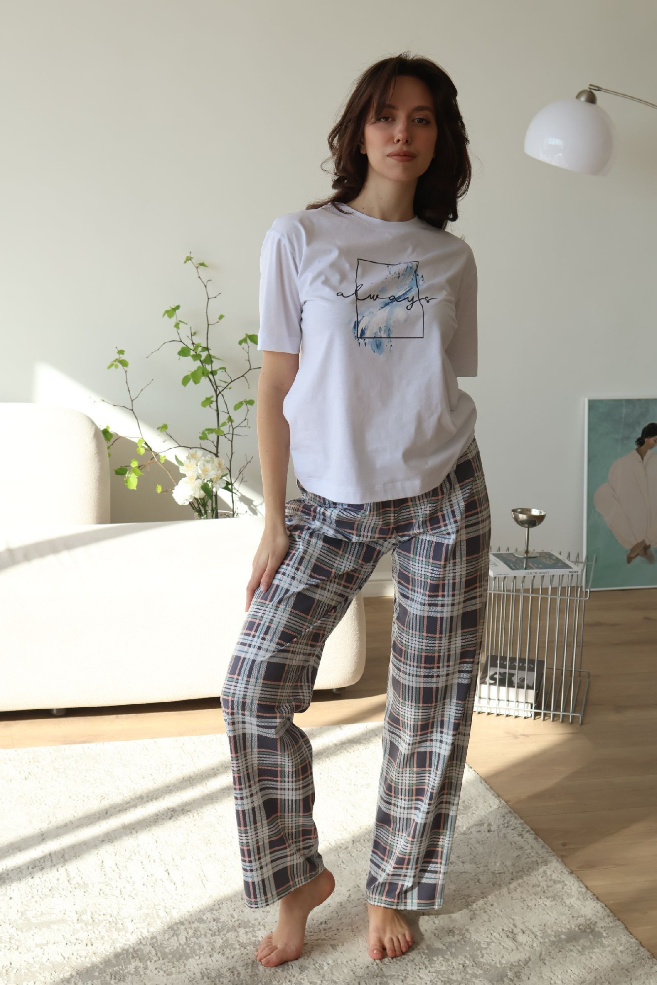 Классические серые брюки прямого покроя слегка зауженные к низу. Аккуратный крупгый орнамент «елочка» разбавит классический нейтральный оттенок. Пояс отрезной, выполнен из основной ткани, с эластичной тесьмой внутри, что позволяет быть вещи практичной и удобной. По бокам вместительные карманы. На задней половинке брюк кокетка, что обеспечить идеальную посадку. Можно носить как с блузкой и пиджаком, так и с худи и кроссовками. Модель рассчитана на рост 164-170 см.