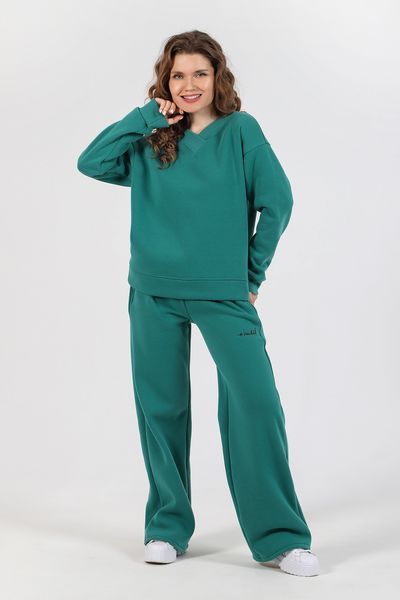 Костюм молодежный из трикотажного гладкокрашенного полотна «футер» с начесом, состоящий джемпера и брюк.