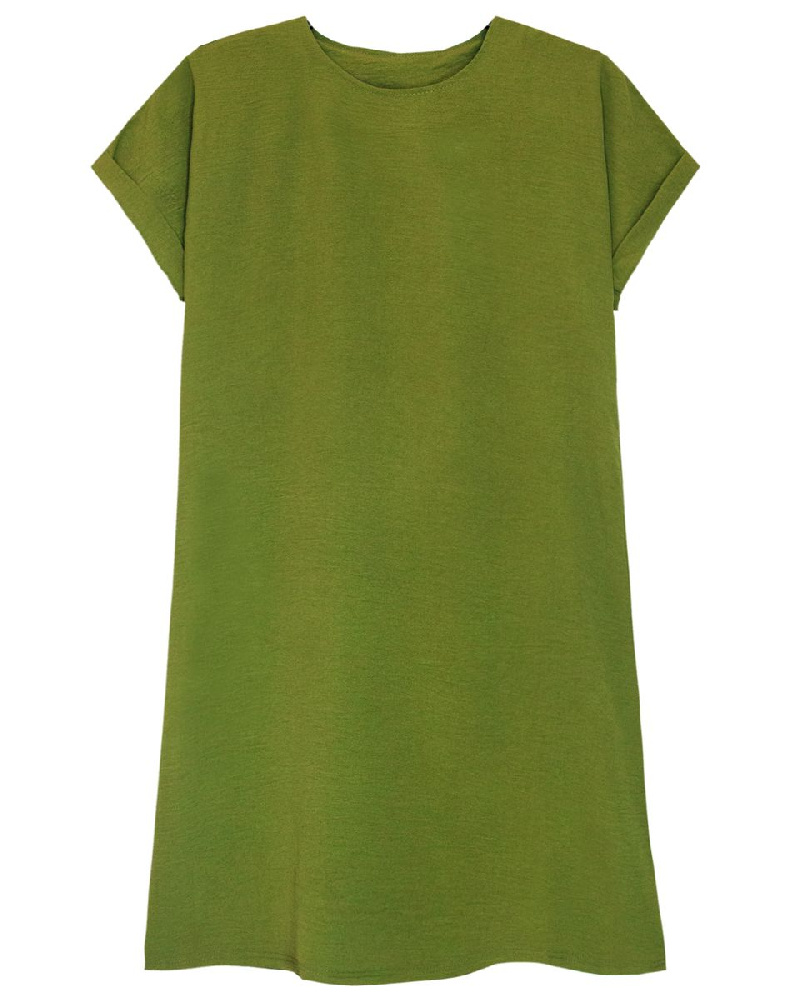 Платье женское короткое трапецевидного силуэта, умеренного обьема, короткий цельнокроенный рукав, низ рукава на манжете,округлый вырез горловины, обработанный основным полотном. Модель рассчитана на рост 164-170 см. После стирки возможна усадка изделия.