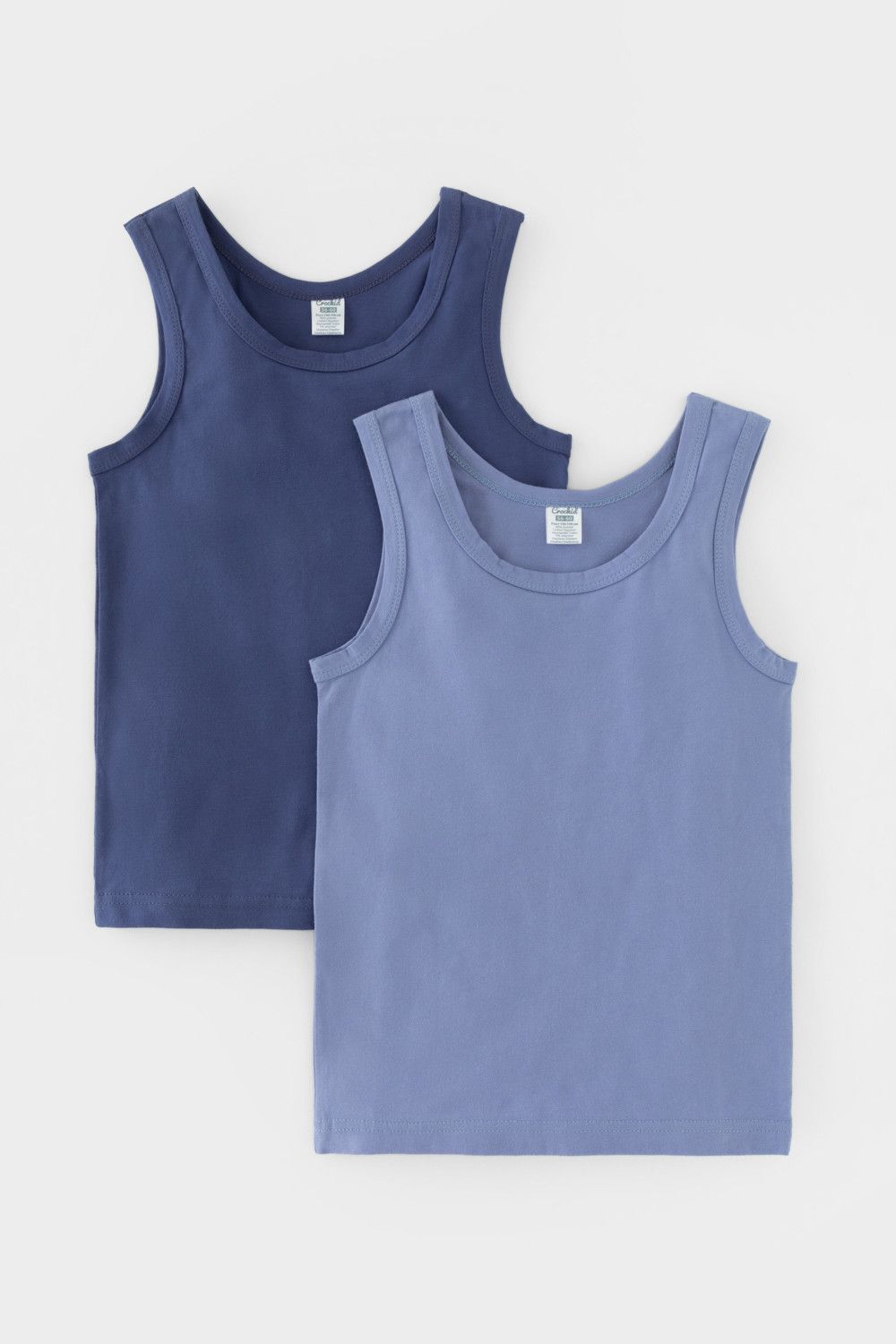 Состав: 100% хлопок. Трикотажные майки в комплекте 2 шт на лямках из натурального хлопка. Изделие сохраняет цвет и форму после многократных стирок. Все трикотажные полотна производятся в соответствии с нормами Швейцарского сертификата ЭкоТекс.