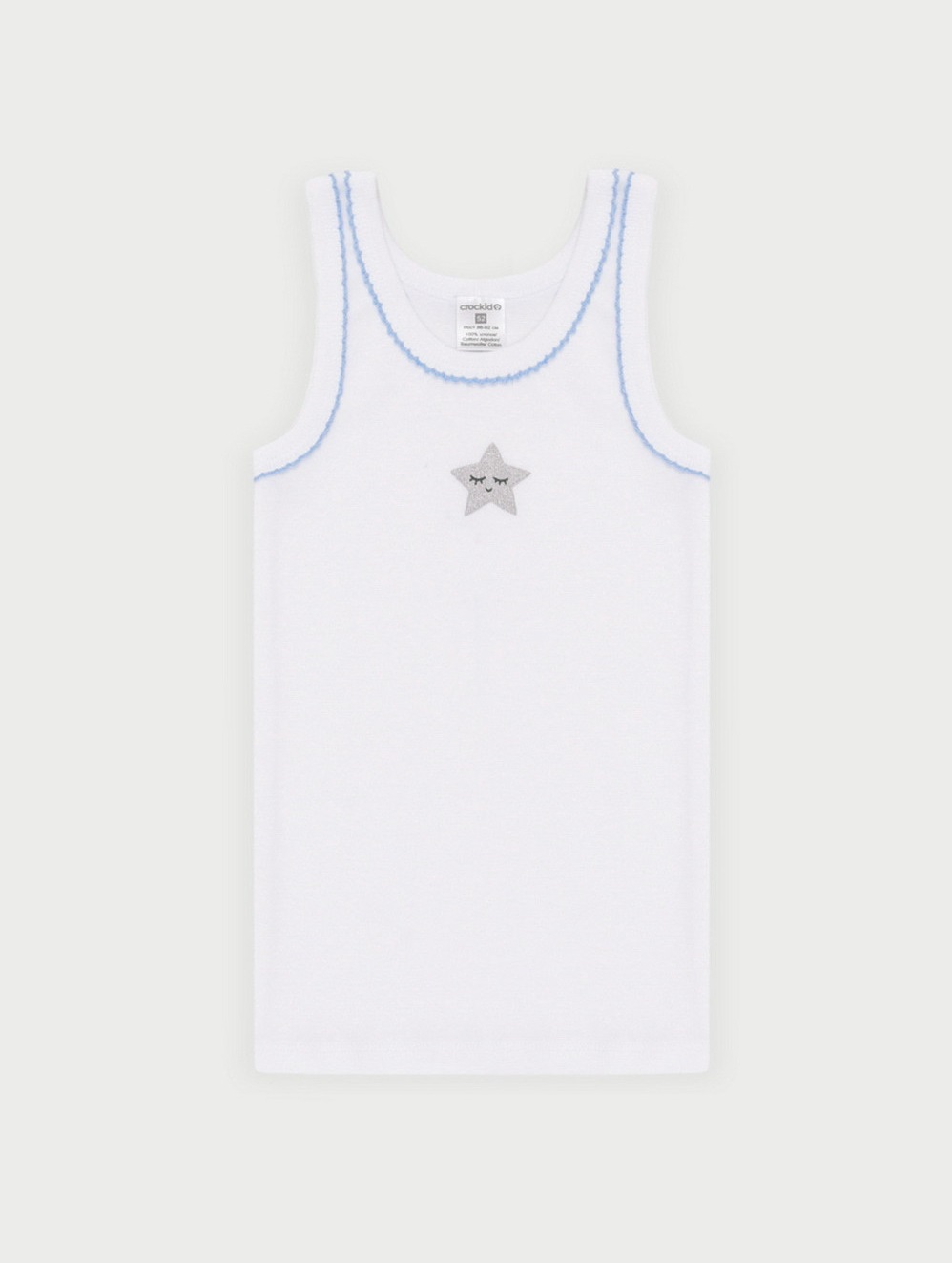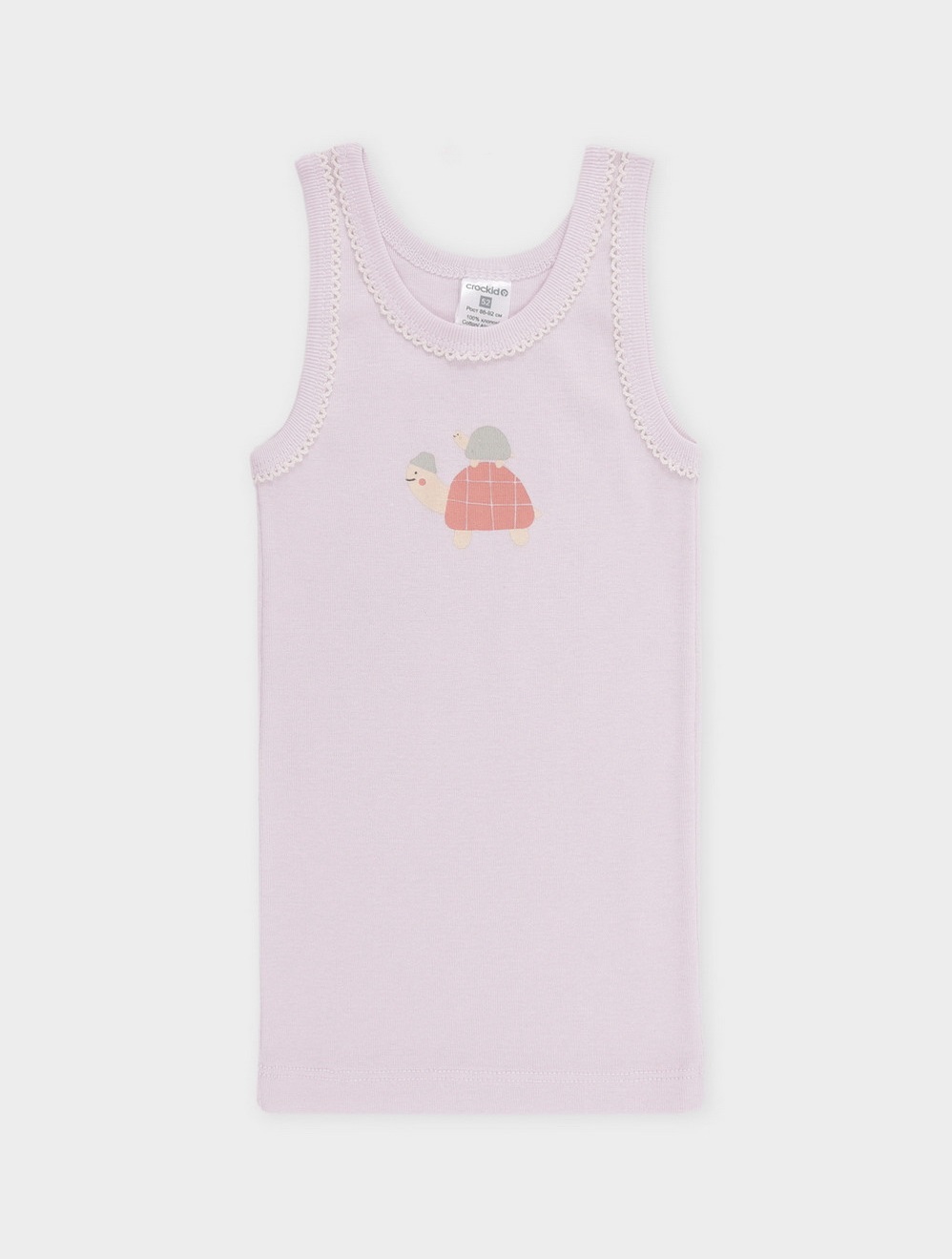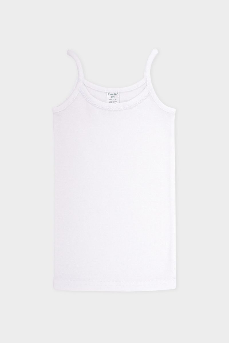 Состав: 100% хлопок. Бесшовная майка для девочки из трикотажного хлопка. Отсутствие боковых швов обеспечивает комфорт при ношении. Горловина и проймы украшены эластичной кружевной тесьмой.