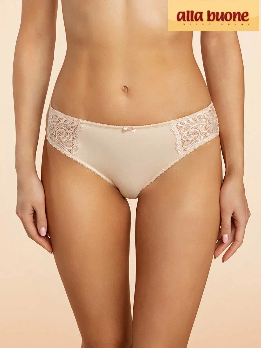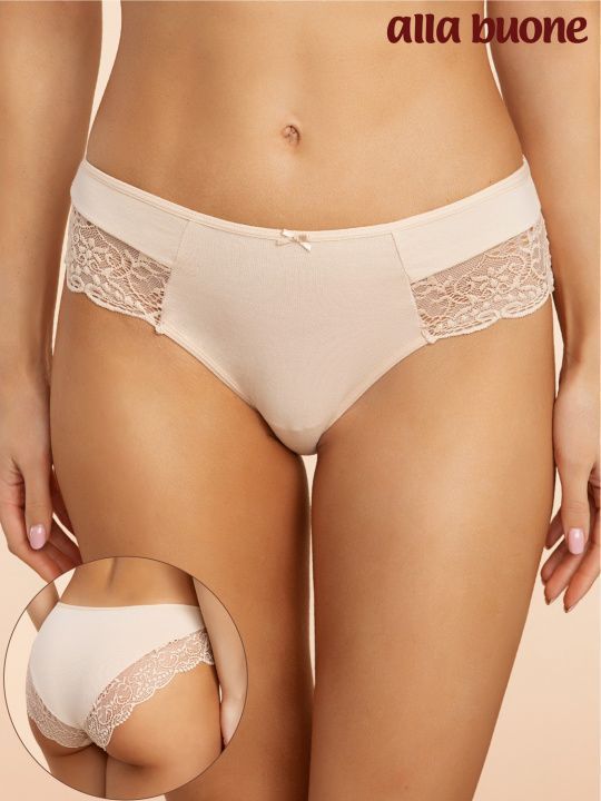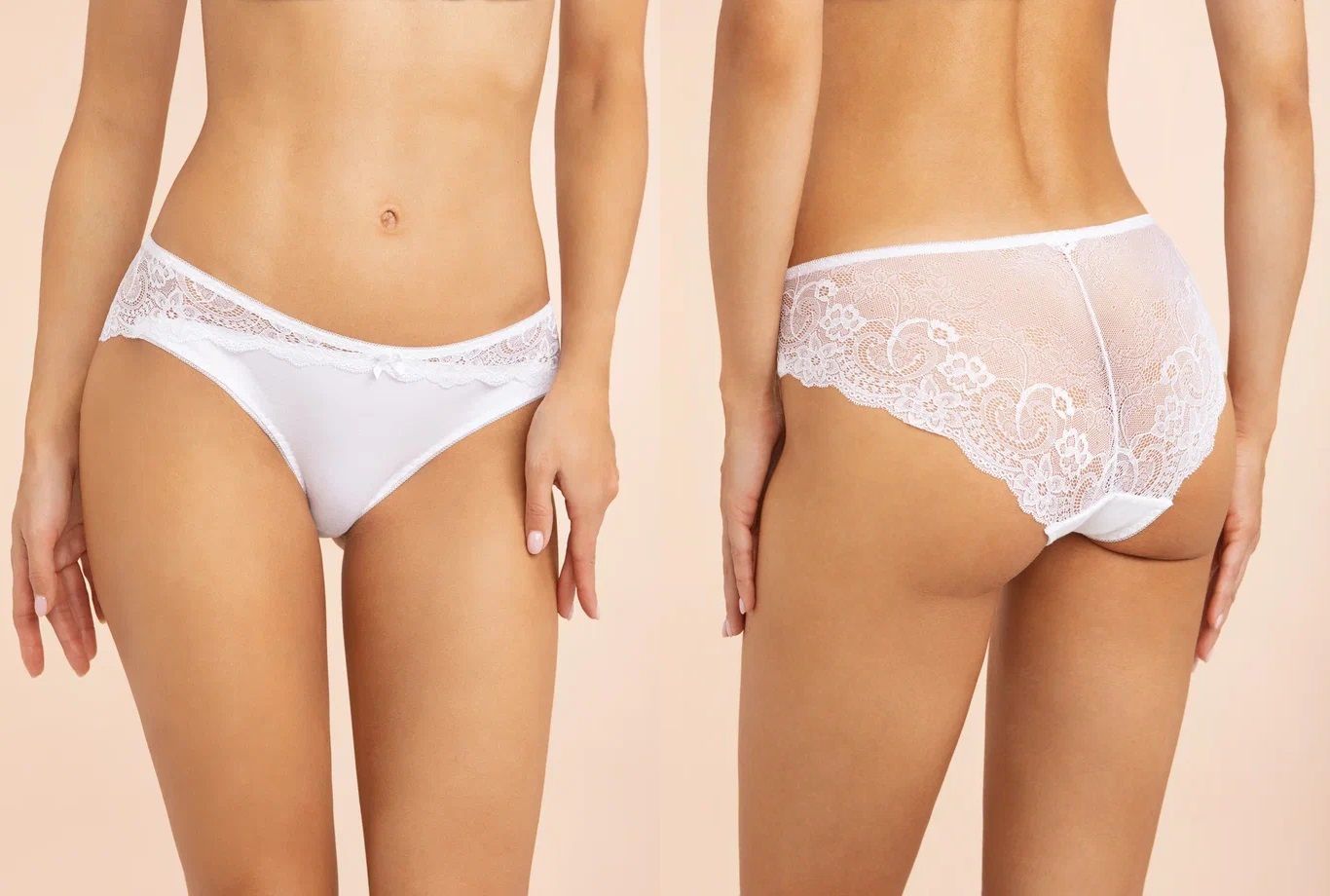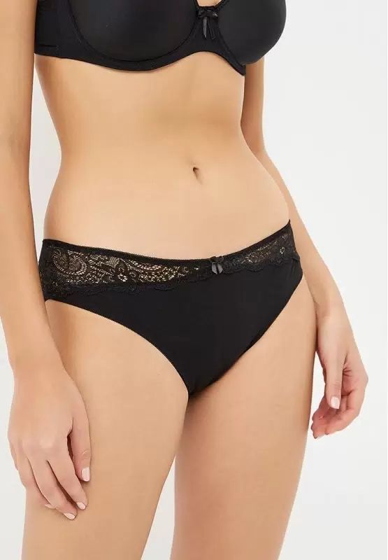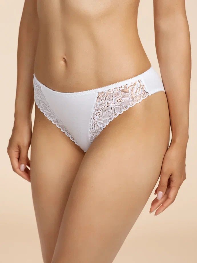 Состав: 60% хлопок, 35% полиамид, 5% эластан. Хлопковые трусы слипы средней посадки с кружевом.
