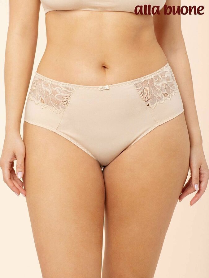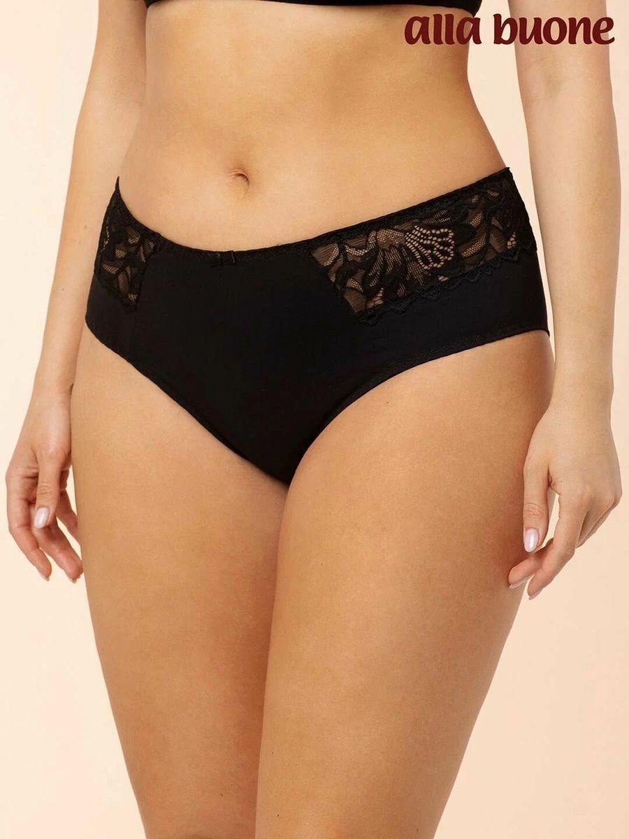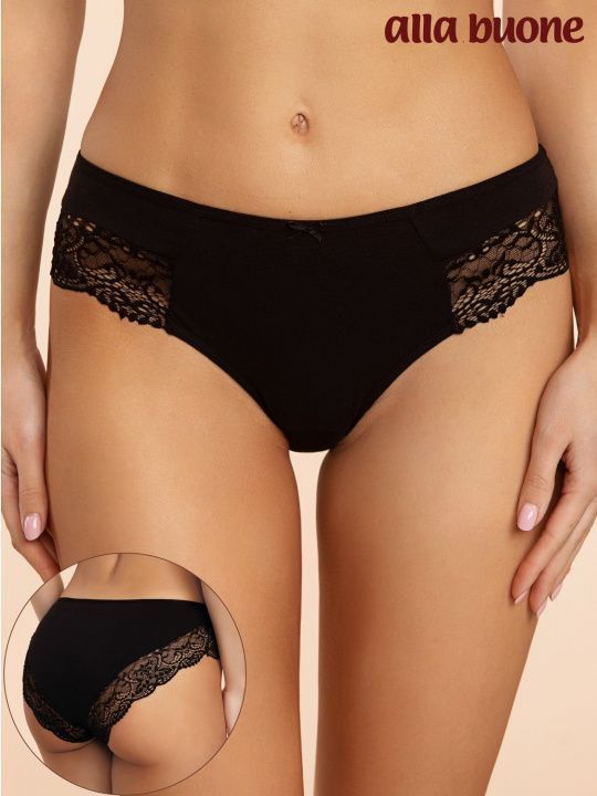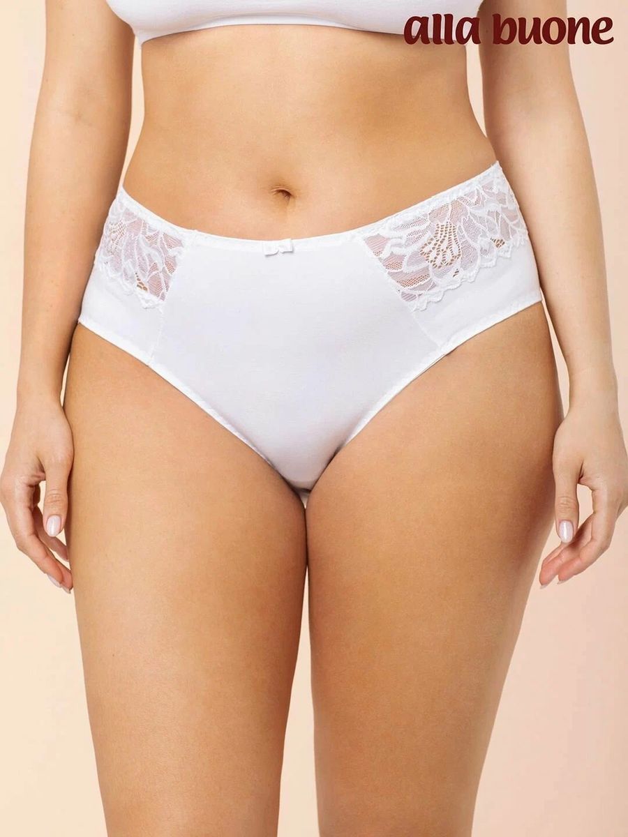 Состав: 60% хлопок, 35% полиамид, 5% эластан. Хлопковые трусы макси средней посадки с кружевом.