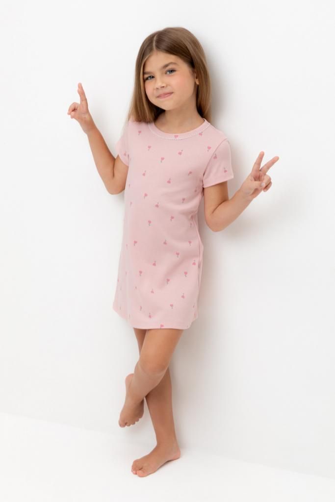 К 1156/розовый жемчуг,цветочная поляна сорочка ночная для дев