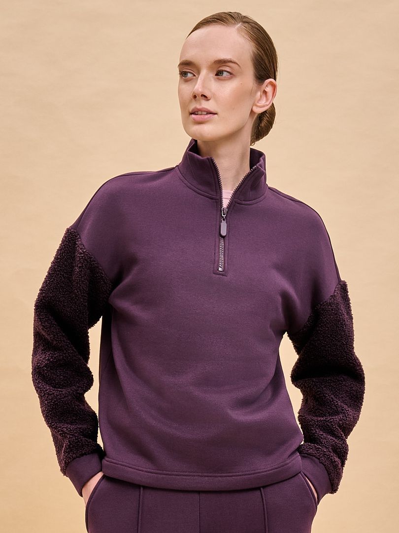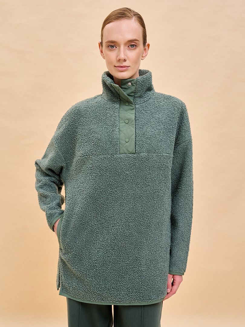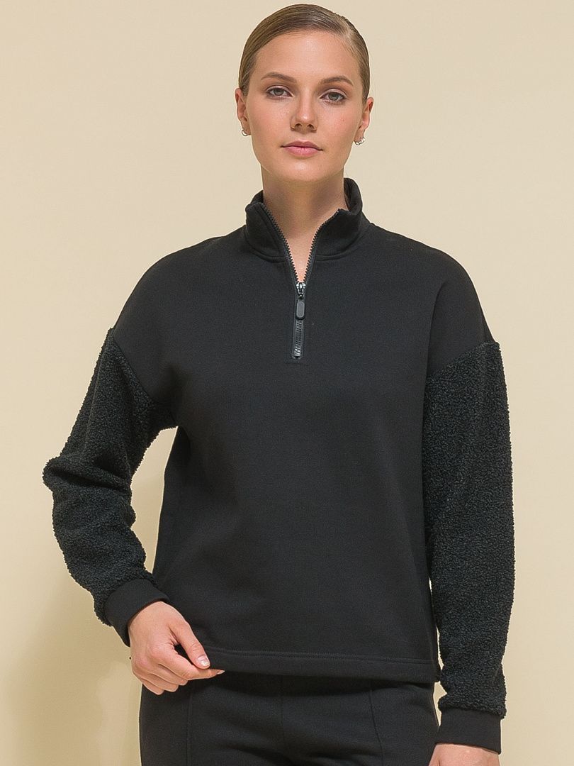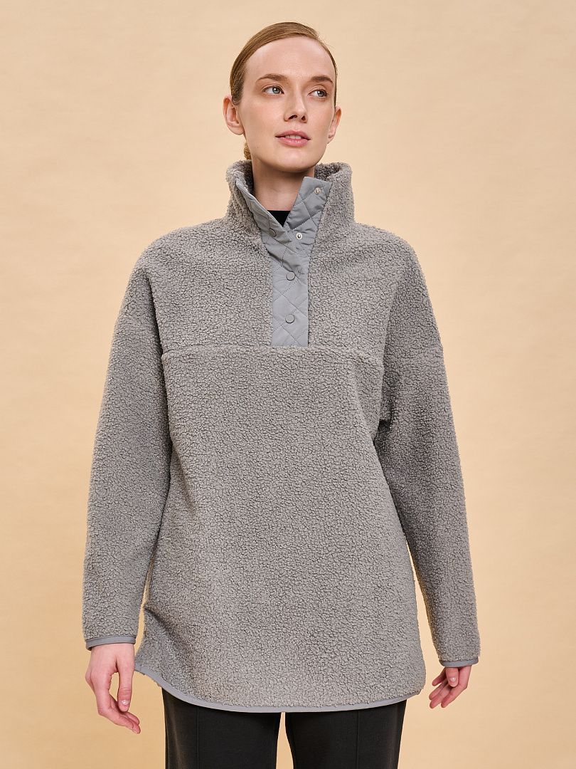 Состав: 60%хлопок 40%полиэстер, вставка: 100%полиэстер Стильный женский свитшот свободного силуэта со спущенным плечом. Толстовка без капюшона выполнена в комбинации двух материалов: гладкого футера и фактурного меха «барашек». Это актуальный модный тренд. Толстовка с воротником-стойкой. Он защитит от холода и ветра. Застёжка на короткую молнию — удобно и быстро застёгивать и расстёгивать. По низу удобная кулиска — можно регулировать объём и посадку. Свитшот однотонный, без принта. Изделие неприхотливо в уходе, его легко стирать, ткань быстро сохнет и не склонна к образованию катышков. В составе основной ткани (футкер с начесом) преобладает качественый хлопок — толстовка мягкая, отлично дышит. Рукава выполнены из мягкого и приятного на ощупь бербер-флиса (фактура «барашка»). Свитшот представлен в двух универсальных цветах: чёрном и молочном. Его легко сочетать с различными моделями брюк. Размерная линейка: XS (42); S (44); M (46); L (48). Толстовка идеальна как для женщин, так и для девушек и девочек-подростков. Подходит и высоким, и невысоким девушкам. Оверсайз-свитшот — прекрасный выбор для повседневной носки и активного отдыха. Он тёплый, лёгкий и мягкий. Для круглогодичного применения: прохладным летом, осенью, зимой, весной и демисезон. Это модный и практичный подарок для сестры, подруги или дочки на любой праздник.