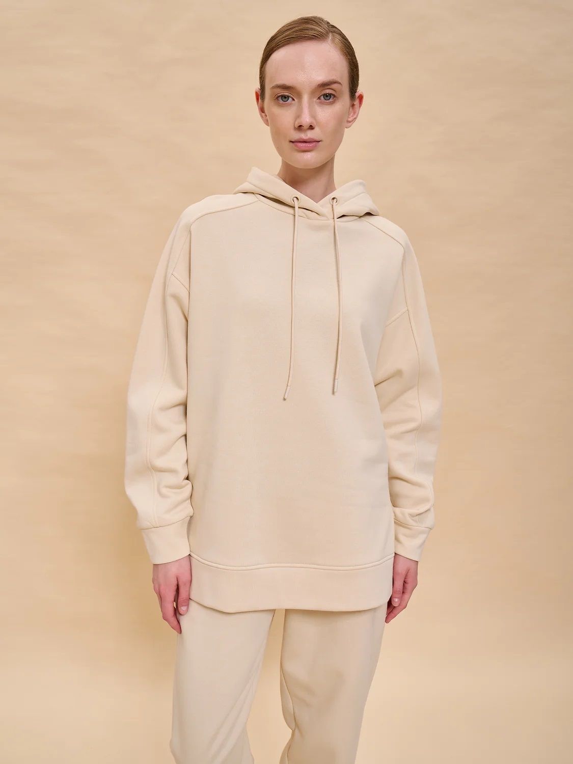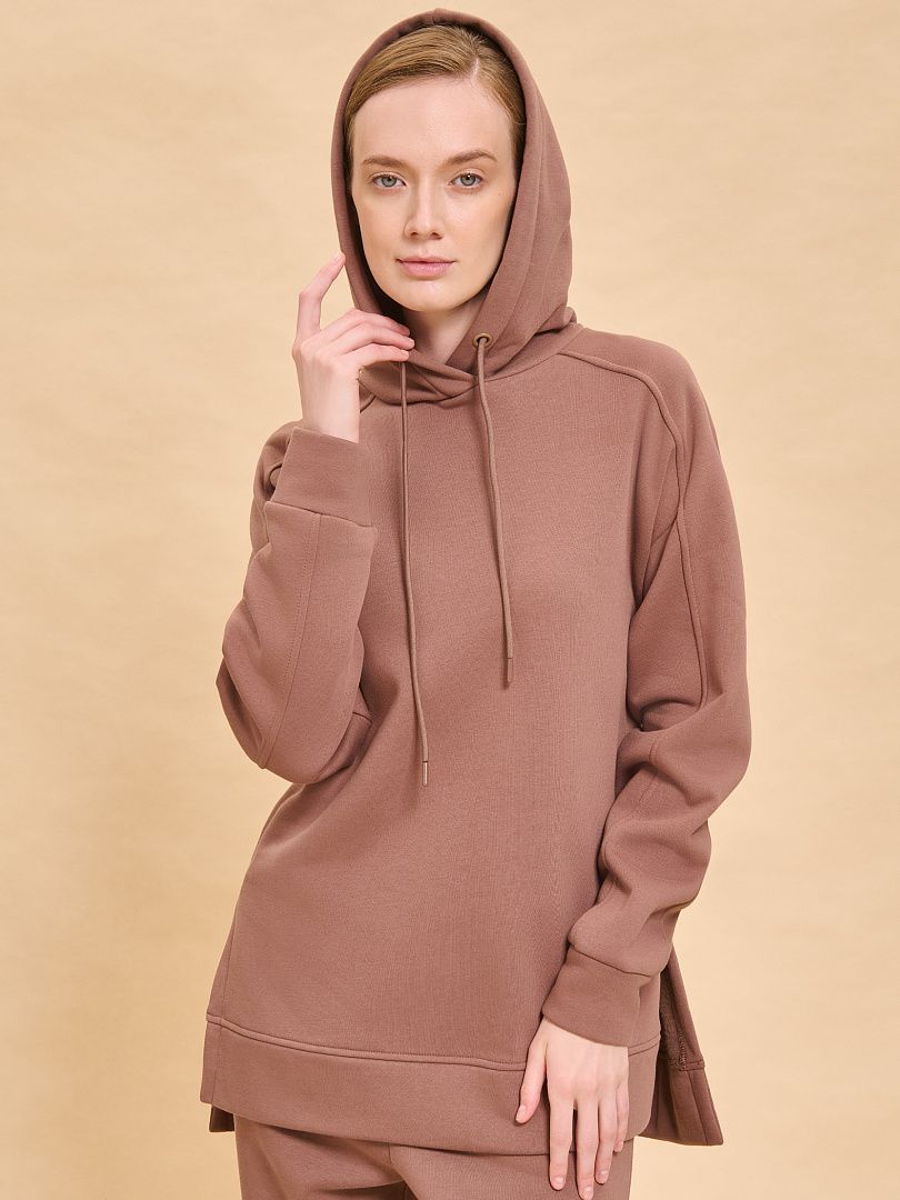 Состав: 66%хлопок 34%полиэстер Худи женское с капюшоном. Комфортная толстовка свободного прямого силуэта подарит вам комфорт и станет стильным и уютным дополнением гардероба. Спинка худи длиннее переда, разрезы в боковых швах — актуальные тренды сезона. Манжеты и отделка низа из основной ткани. Интересная деталь — необычный, комбинированный крой рукавов. Капюшон с подкладкой из кулирной глади — смотрится аккуратно и хорошо держит форму. На капюшоне есть кулиска с крупными люверсами и шнурком из основной ткани — можно регулировать объём. Модель неприхотлива в уходе. Худи с капюшоном выполнено из мягкого футера с начёсом — в составе ткани преобладает высококачественный хлопок, ткань дышит. Полиэстер помогает сохранить цвет и первозданный внешний вид надолго. Женское худи выполнено в в универсальных цветах, которые легко сочетать с любыми брюками, джинсами — можно создать много стильных образов. Толстовка лаконичного дизайна, без принтов. Однотонное оверсайз худи — базовый элемент повседневного женского гардероба. Худи с начесом можно носить круглый год. Помните о правильном уходе за изделием: рекомендуется стирать при температуре не выше 30 °C, без предварительного замачивания, с изнанки. Это поможет сохранить качество и цвет худи на длительное время.Не забывайте о выборе правильного размера. Используйте таблицу размеров на фотографии, чтобы выбрать подходящий для себя вариант.Обратите внимание, что цвет товара на экране вашего устройства может отличаться от реального.