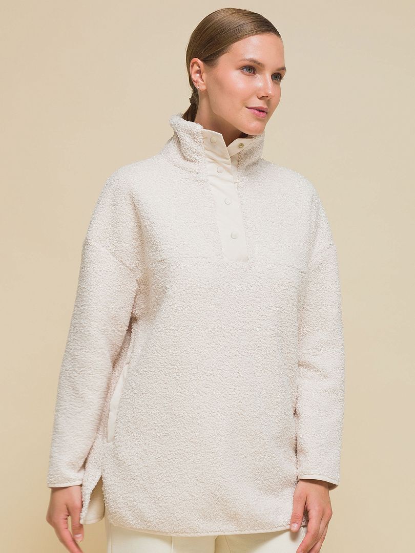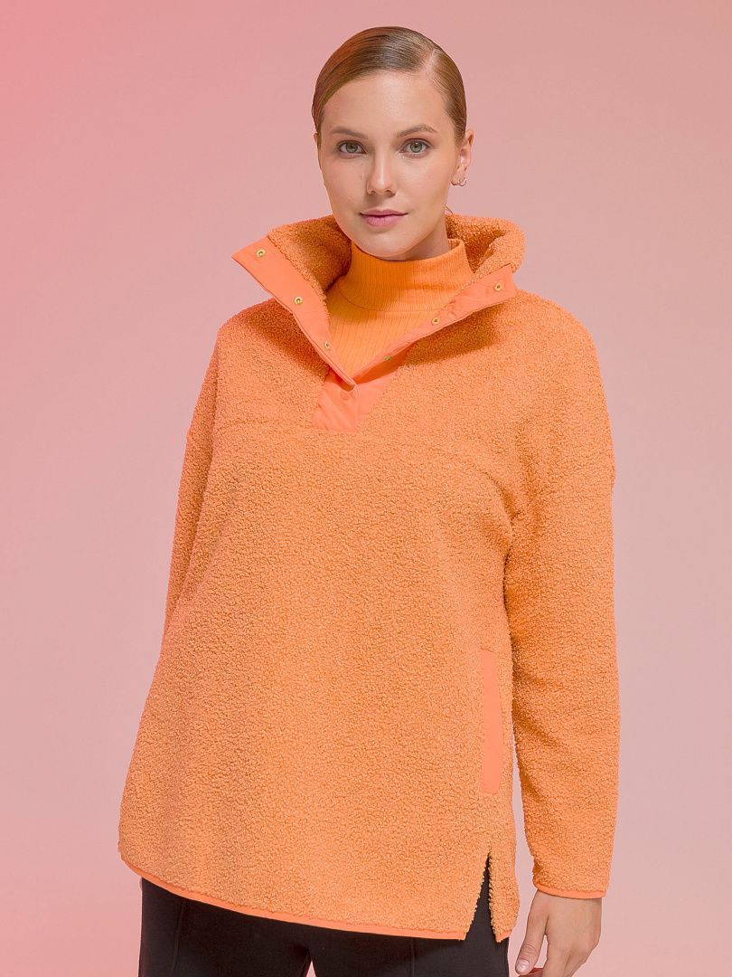 Состав: 100%полиэстер Женская толстовка-анорак из модного бербер-флиса (фактура «барашка»). Куртка свободного силуэта со спущенным плечом застёгивается на кнопки — легко застёгивать и расстёгивать. Декоративная отделка из гладкого «курточного» материала — один из актуальных трендов. В боковых швах удобные карманы. Толстовка без капюшона. Объёмный воротник можно носить двумя способами. Как воротник-стойку — защитит от холода и ветра. И как отложной воротник в более тёплую погоду. Пушистая толстовка лаконичного дизайна, без принта. Она проста в уходе: изделия из флиса прочные, легко стираются, не линяют, быстро сохнут и устойчивы к образованию катышков. Анорак из качественного флиса очень лёгкий, тёплый и прекрасно пропускает воздух. Куртка представлена в двух уютных цветах: оранжевом и молочном. Размерная линейка: XS (42); S (44); M (46); L (48); XL (50). Плюшевая толстовка подходит женщинам, девушкам, девочкам-подросткам. Идеальна как для высоких женщин, так и для девушек среднего роста. Анорак можно носить как куртку ранней осенью или поздней весной. Толстовка с воротником тёплая и мягкая. Объём позволяет надеть под низ футболку или водолазку. Флисовая толстовка — отличный выбор для прогулок и активного отдыха. Для круглогодичного применения: прохладным летом, осенью, зимой, весной и демисезон. Она станет стильным и практичным подарком подруге, дочери или сестре на Новый год или любой другой праздник.
