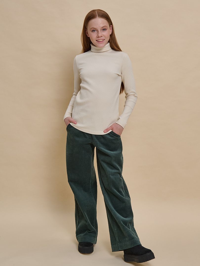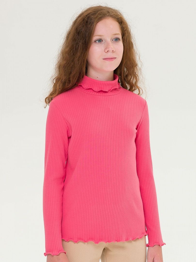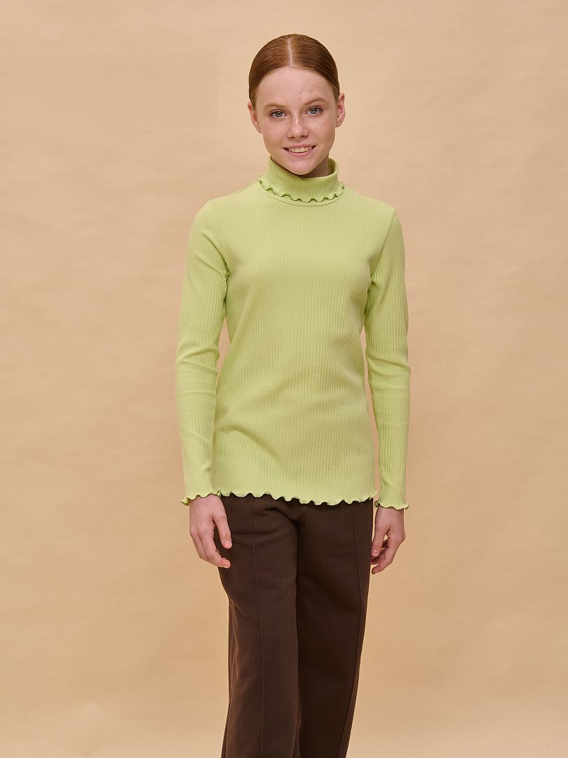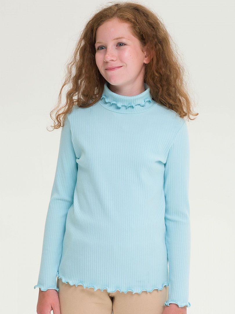 Состав: 95%хлопок 5%эластан Водолазка в рубчик для девочки. Натуральный хлопок в составе позволяет телу дышать, ткань отлично растягивается и быстро возвращается в исходную форму, приятна на ощупь и проста в уходе. Воротник-стойка – отлично сохраняет форму, удобно надевать и снимать. Низ, рукава, воротник у изделия обработаны декоративной строчкой – салатный край делает классический образ нарядным. Водолазка комбинируется с джоггерами и слоучами, одинаково хорошо смотрится заправленной и навыпуск. Подходит для стильного образа на каждый день, идеальна для школы.