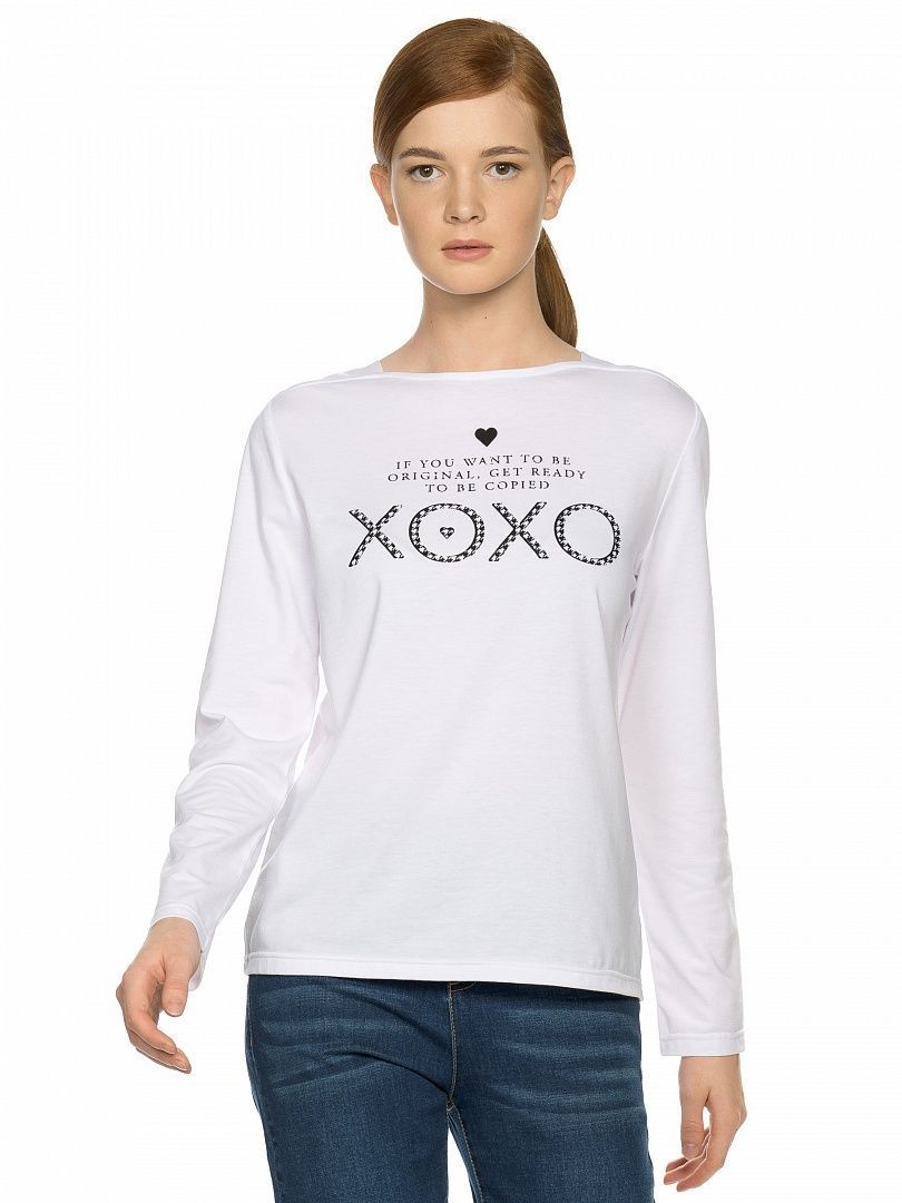 Состав: 60%полиэстер 35%хлопок 5%эластан Джемпер женский из мягкого тонкого трикотажа прямого кроя с почти квадратной формой горловины за счет подкройных плечей. Втачной рукав. Стойкий эластичный glossy rubber принт. Перевод Если хочешь быть оригиналом будь готов к тому, что тебя захотят копировать.