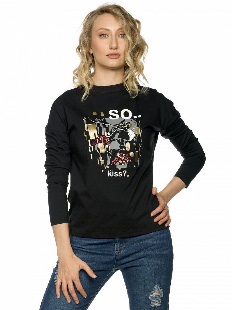 Состав: 100%хлопок Новинка! Джемпер женский свободного объема со спущенной линией плеча, горловиной из рибаны, стойким эластичным принтом с элементами золота, в стиле картины Климта и вышивкой деликатными красными пайетками-монисто. Перевод Итак... поцелуй?