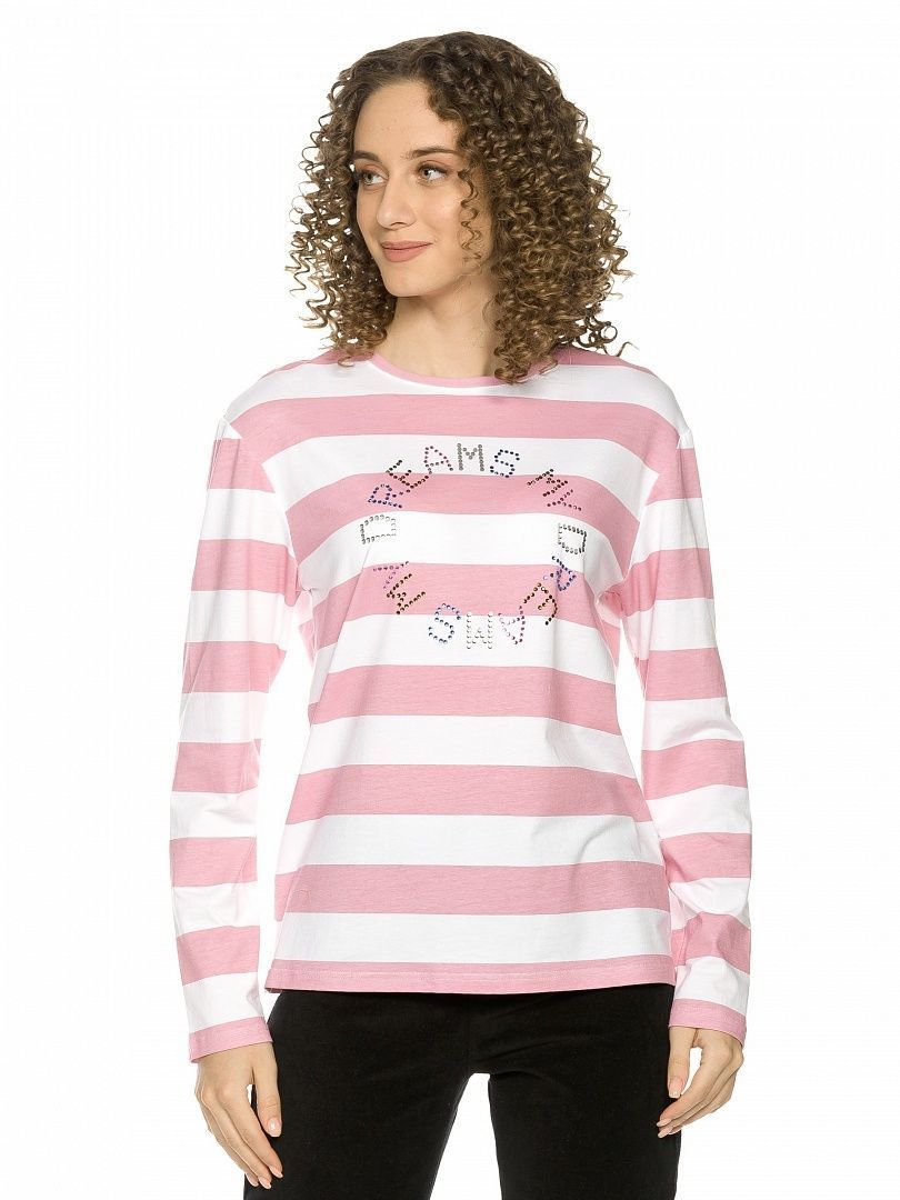 Состав: 95%хлопок 5%эластан Джемпер женский. Прямой свободный лонгслив. Немного спущенная линия плеча. Расслабленный силуэт. Декор из разноцветных страз и серебристого металлика. Перевод Мои мечты .