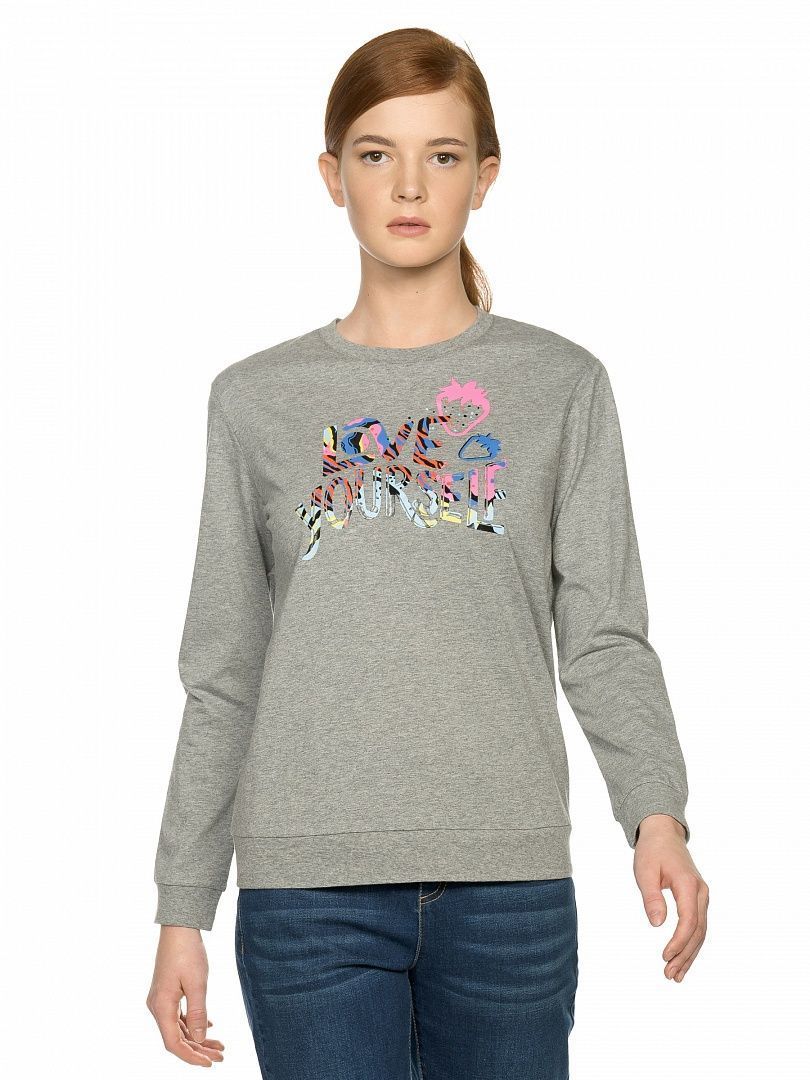 Состав: 100%хлопок, вставка: 95%хлопок 5%эластан Джемпер женский из мягкого тонкого трикотажа свободного объема. Серый благородный меланж. Горловина, манжеты рукавов и низ изделия из меланжевой рибаны. Эластичный стойкий неоновый принт с черным глянцем. Перевод Люби себя.