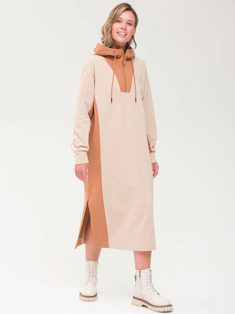 Состав: 65%хлопок 35%полиэстер Платье худи женское актуальной длины миди. Платье комфортного свободного силуэта-кокон со спущенным плечом подарит вам комфорт и станет стильным и уютным дополнением гардероба. Фишка модели — капюшон интересного кроя. Край капюшона заканчивается широкой планкой со сгибом — капюшон хорошо держит форму. Манжеты рукавов выполнены из основной ткани. В боковых швах удобные карманы. Интересная деталь — необычный, комбинированный крой рукавов. Модель неприхотлива в уходе. Платье теплое женское выполнено из ткани «французский рубчик» — в составе ткани преобладает высококачественный хлопок, ткань дышит и приятна на ощупь. Полиэстер помогает сохранить цвет и первозданный внешний вид надолго. «Французский рубчик» придаёт модели актуальный объём. Трикотажное платье миди выполнено в в универсальных цветах, легко сочетается с любой одеждой и аксессуарами. Модель лаконичного дизайна, без принта. Однотонное платье худи женское — базовый элемент повседневного гардероба. Платье из футера с начесом можно носить как зимой, так и весной/осенью (демисезон). Помните о правильном уходе за изделием: рекомендуется стирать при температуре не выше 30 °C, без предварительного замачивания, с изнанки. Это поможет сохранить качество и цвет платья на длительное время.Не забывайте о выборе правильного размера. Используйте таблицу размеров на фотографии, чтобы выбрать подходящий для себя вариант.Обратите внимание, что цвет товара на экране вашего устройства может отличаться от реального.