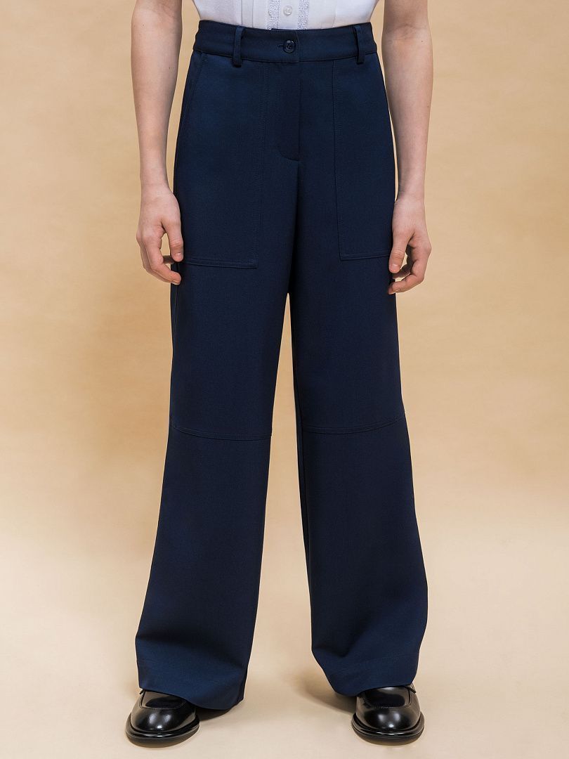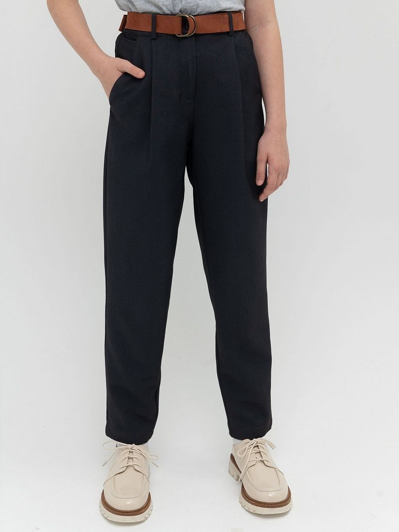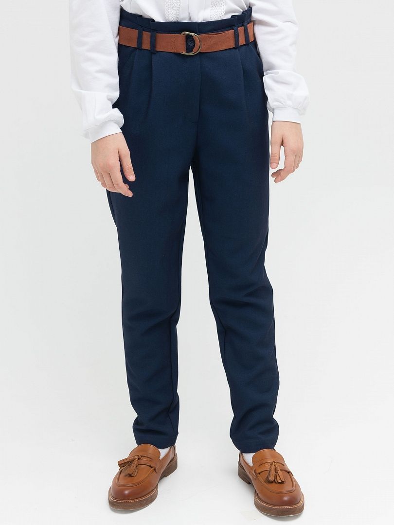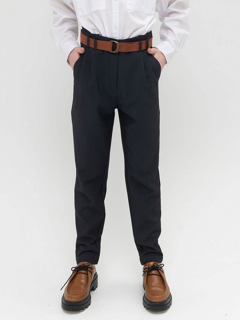 Состав: 52%вискоза 44%полиэстер 4%эластан Брюки умеренного объема из костюмной ткани для девочки. Ткань легкая и прочная, почти не мнется. Брюки комфортно носить, за ними легко и просто ухаживать. Пояс декорирован элементом со складками, имеет шлевки под ремень и внутренний эластичный шнур на пуговицах для регулировки объема. Молния надежно скрыта гульфиком. Карманы имеют комфортный вход для рук, их удобно использовать по прямому назначению. Брюки идеальны для создания школьного образа на каждый день и торжественных случаев.