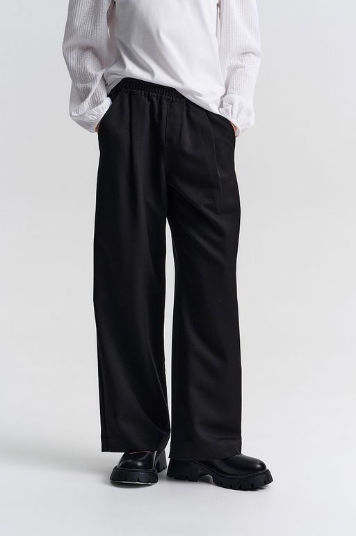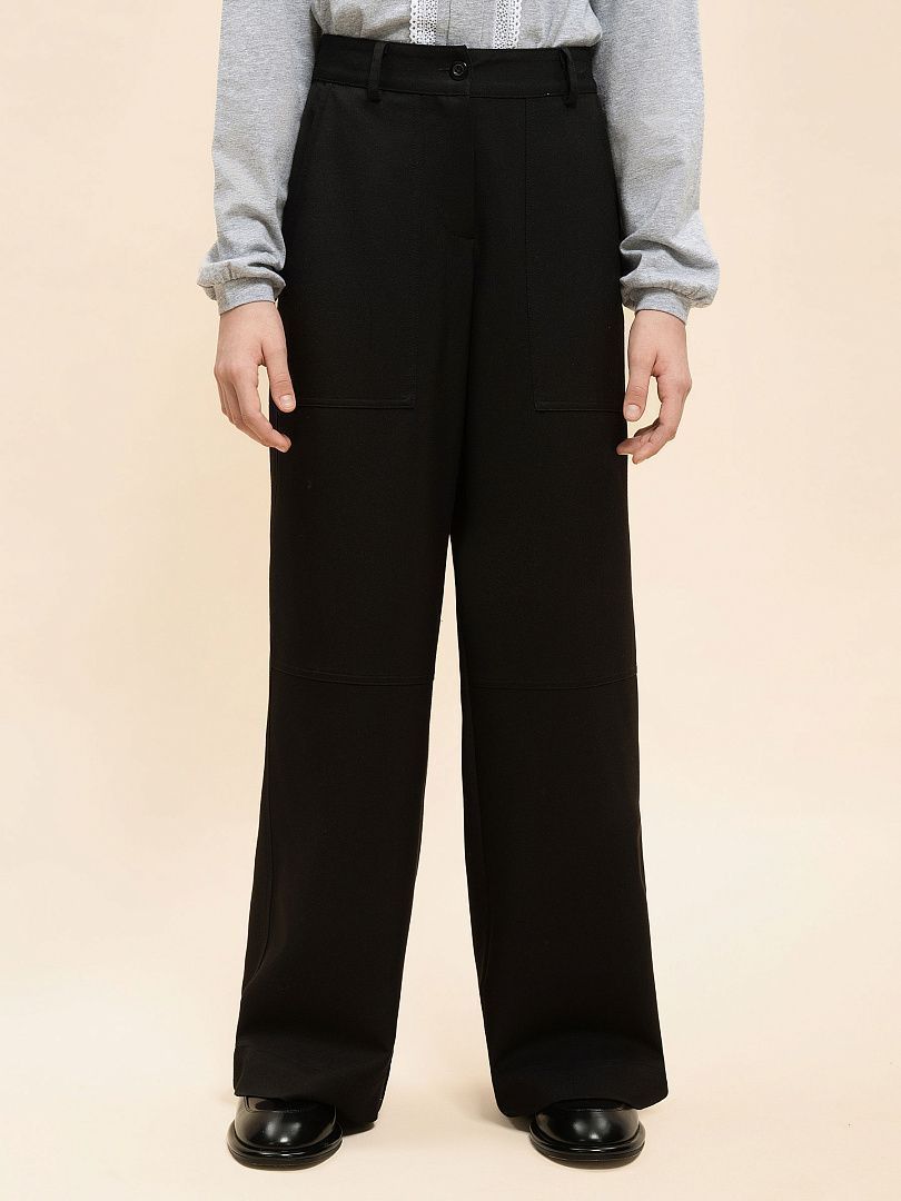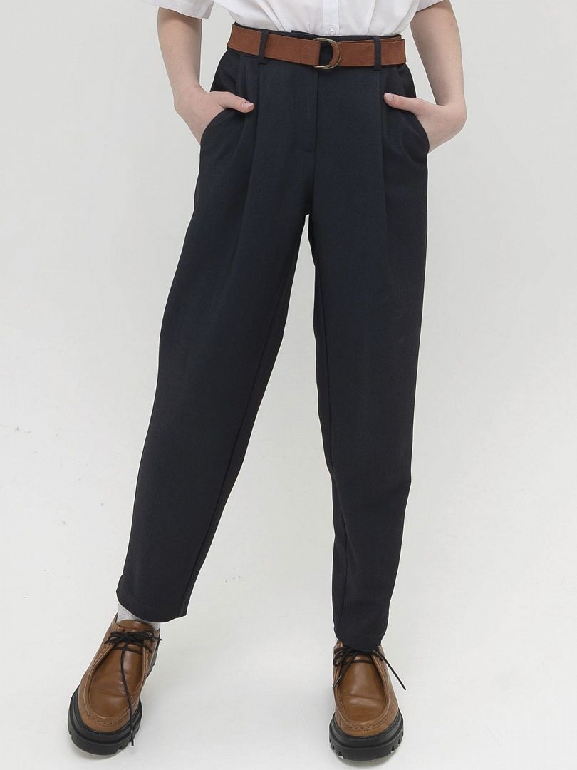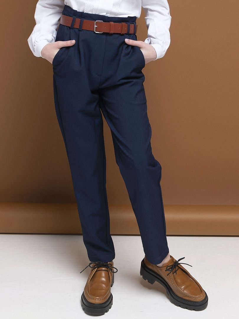 Состав: 52%вискоза 44%полиэстер 4%эластан Брюки умеренного объема из костюмной ткани для девочки. Ткань легкая и прочная, почти не мнется. Брюки комфортно носить, за ними легко и просто ухаживать. Пояс декорирован элементом со складками, имеет шлевки под ремень и внутренний эластичный шнур на пуговицах для регулировки объема. Молния надежно скрыта гульфиком. Карманы имеют комфортный вход для рук, их удобно использовать по прямому назначению. Брюки идеальны для создания школьного образа на каждый день и торжественных случаев.