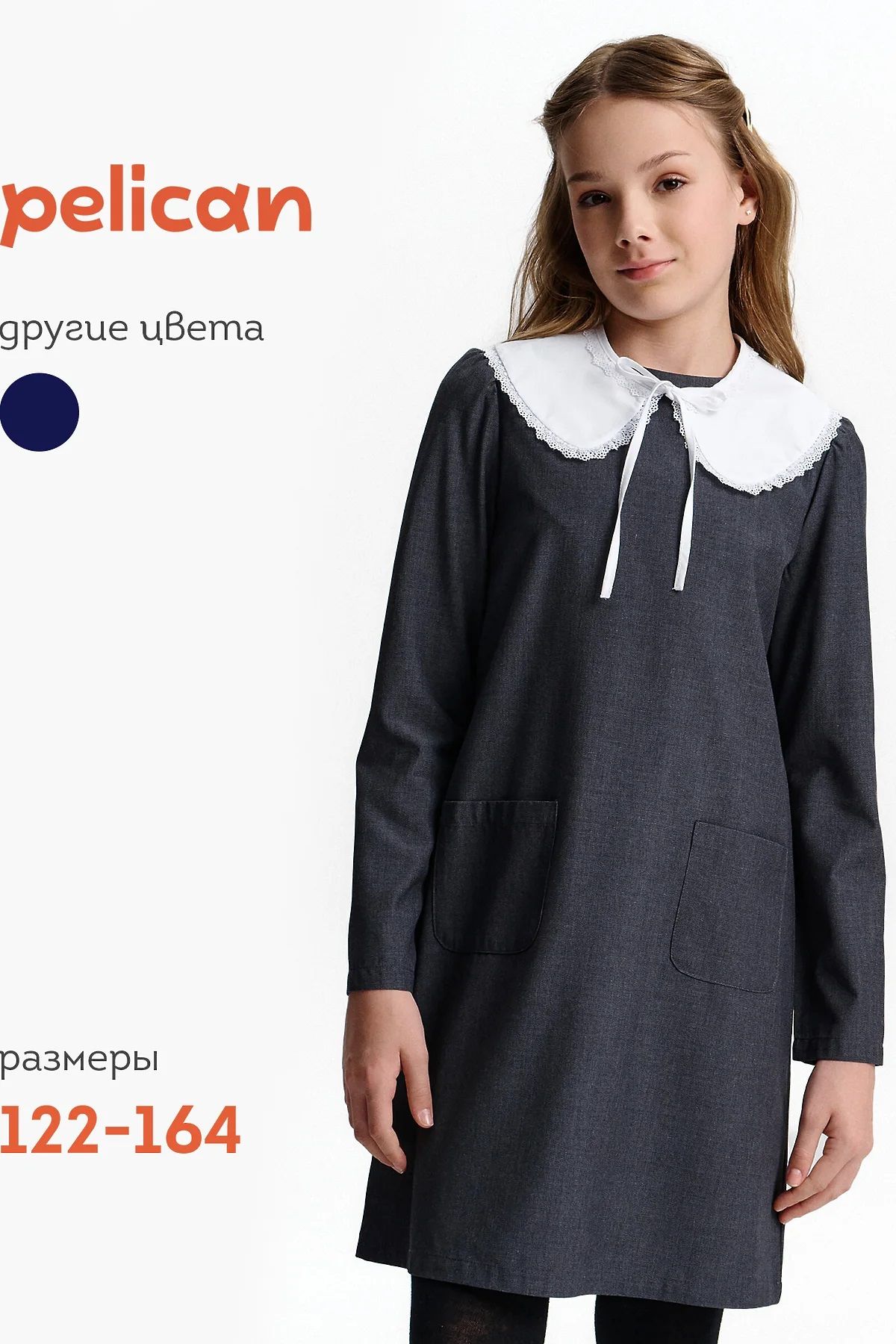 Состав: 52%вискоза 48%полиэстер, вставка: 60%хлопок 40%полиэстер Школьное платье А-силуэта — строгость формы и комфорт на каждый день.Лаконичный дизайн, продуманный крой и съёмный декоративный воротник — модель, которая подойдёт и для школы, и для повседневной носки после уроков.Свободный силуэт с лёгким расширением к низу обеспечивает свободу движения и аккуратный внешний вид.Нагрудные вытачки и средний шов на спинке улучшают посадку и делают платье более структурированным.Два накладных кармана спереди со скруглёнными краями — удобно и функционально.Рукав прямой, втачной, с лёгкой сборкой — сидит аккуратно, не сковывает.Плечо чуть укорочено, что придаёт современный силуэт.Горловина круглая, с застёжкой на петлю и пуговицу по спинке — просто надевать самостоятельно.Съёмный воротник украшен рюшей из кружева.С воротником — строгий школьный образ, без него — повседневное платье.Выбирайте нужный размер по таблице размеров на фото. Цвет товара на экране вашего устройства может отличаться от цвета изделия вживую.