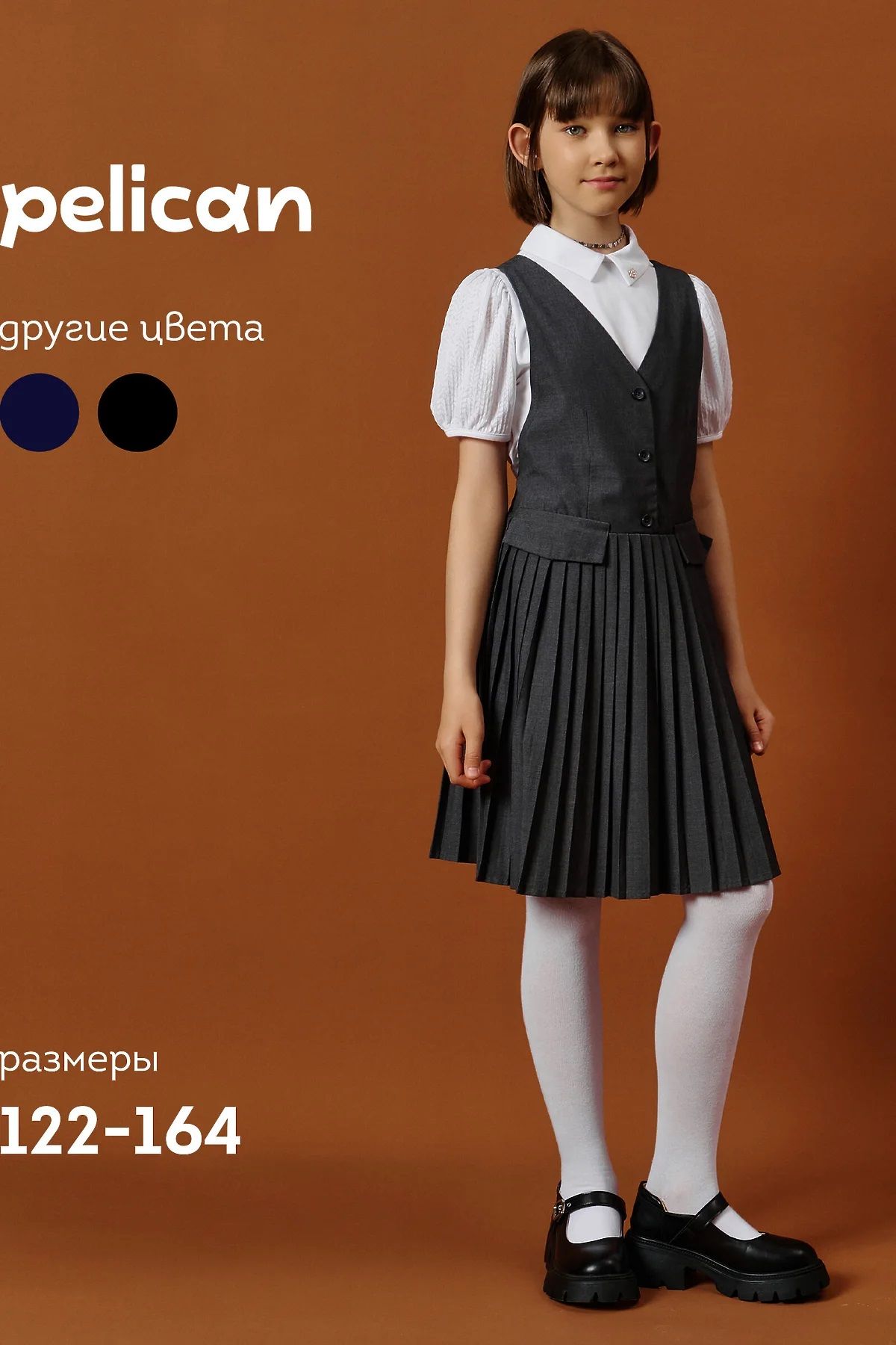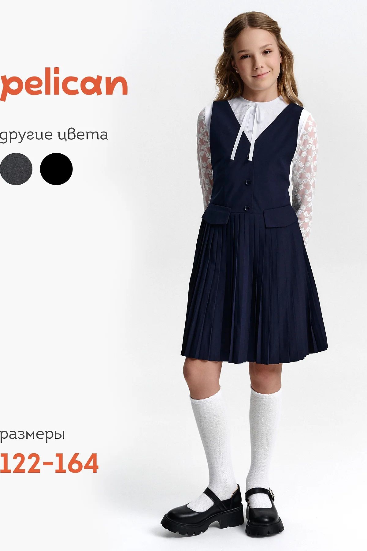 Состав: 52%вискоза 48%полиэстер Швейный сарафан с юбкой в мелкую плиссировку — удобный и стильный выбор для школы и не только.Мелкие складки шириной 5 мм создают аккуратный, ровный рисунок, который не мнётся и сохраняет форму даже после долгого учебного дня.Верх сарафана — жилет с застёжкой на пуговицы спереди. Спинка с перекрещивающимися лямками регулируется по длине, чтобы сарафан идеально сидел на ребёнке любого роста. Лямки крепятся к юбке на потайные пуговицы, что обеспечивает надёжную фиксацию и комфорт при движении.Декоративные клапаны на линии талии придают школьному образу стиль и аккуратность.Юбка сзади на внутренней резинке — она помогает сарафану удобно сидеть на талии, не сползать и не мешать во время уроков и активных перемен.Сшит из смесовой ткани — практичный материал, который не мнётся, дышит и легко стирается. Сарафан прослужит долго, сохраняя аккуратный вид как в школе, так и в повседневной жизни.Выбирайте нужный размер по таблице размеров на фото. Цвет товара на экране вашего устройства может отличаться от цвета изделия вживую.