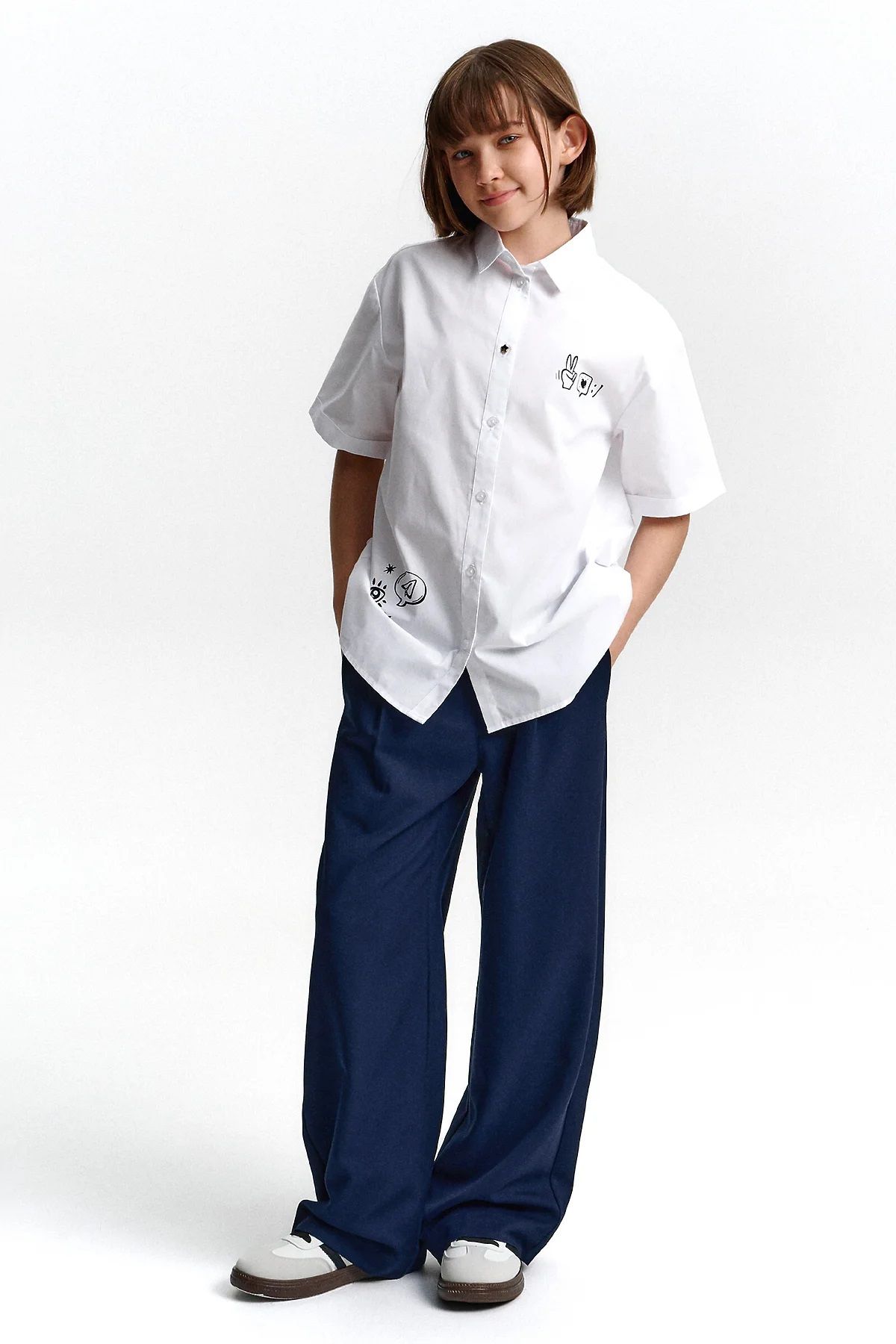Состав: 52%вискоза 44%полиэстер 4%эластан Школьные брюки для девочки из смесовой ткани — удобство и аккуратный стиль для школы и повседневных занятий.Свободный прямой крой гарантирует комфорт и свободу движений. Такие брюки не сдавливают и отлично подходят для любой фигуры девочки-школьницы.Смесовая ткань — практичный материал для школьной формы: не мнётся, дышит и быстро сохнет, что облегчает уход и помогает всегда выглядеть опрятно.Спереди — удобные боковые карманы с декоративными креплениями, которые делают карманы прочнее и долговечнее. Сзади — аккуратная имитация прорезного кармана для стильного, но строгого образа.Пояс с эластичной резинкой и внутренним шнурком позволяет точно подогнать брюки по талии — важно для растущих девочек, чтобы одежда всегда сидела удобно.Выбирайте нужный размер по таблице размеров на фото. Цвет товара на экране вашего устройства может отличаться от цвета изделия вживую.
