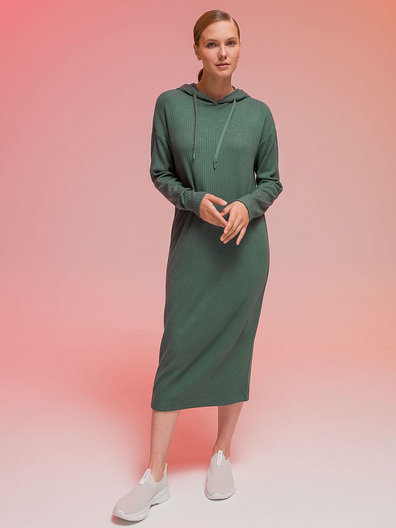 Состав: 41%вискоза 34%полиэстер 17%нейлон 8%эластан Женское платье-худи актуальной длины миди. Трикотажное платье-лапша свободного силуэта со спущенным плечом позволяет чувствовать себя комфортно в любой ситуации. Изделие дополнено капюшоном с утяжкой декоративным шнуром — стильный и практичный элемент. Неприхотливо в уходе. Платье однотонное, без принта. В составе ткани преобладает качественная вискоза — модель мягкая и приятная на ощупь. Полиэстер, нейлон и эластан обеспечивают износостойкость, платье не боится частых стирок, сохраняет прекрасную форму надолго. Женское платье-лапша представлено в элегантном и стильном зелёном цвете. Размерная линейка: XS (42); S (44); M (46); L (48); XL (50). Модное платье из кашкорсе отлично подходит женщинам, девушкам, девочкам-подросткам с любым типом фигуры. Платье миди идеально для повседневной носки, работы, учёбы, отдыха. Его можно носить осенью, зимой, весной и прохладнвм летним днем. Платье-худи — превосходный подарок маме, сестре, подруге на Новый год, День рождения, 8 марта.