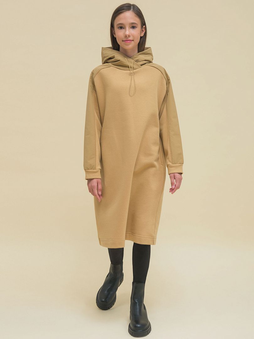 Состав: 72%хлопок 28%полиэстер, вставка: 100%полиэстер Детское платье-худи длиной ниже колена для девочки. Худи с капюшоном выполнено из футера с начёсом и дополнено элементами из гладкой курточной ткани. Сочетание материалов разной фактуры в одном изделии — один из наиболее модных трендов сезона. Капюшон и вставки на рукавах из курточной ткани — практичное решение, ребенок не промокнет под дождём. Вдоль вставок кант из мягкой хлопковой ткани. Худи для девочек актуального оверсайз-силуэта со спущенным плечом подарит ребёнку свободу движений и ощущения комфорта и уюта. На капюшоне предусмотрена регулировка эластичным шнуром со стопперами. Двойной капюшон - швы закрыты, смотрится аккуратно. Манжеты рукавов из основной ткани. В боковых швах карманы — удобно пользоваться. Худи однотонное, без принта. Неприхотливо в уходе. В составе основной ткани преобладает качественный хлопок — платье мягкое и отлично попускает воздух, позволяя коже ребёнка дышать. Благодаря полиэстеру толстовка легко стирается и быстро сохнет, сохраняет отличную форму надолго. Вставки также выполнены из практичного полиэстера - актуальный тренд. Платье представлено в универсальном бежевом цвете. Размерный ряд: 3 (98); 4 (104); 5 (110); 6 (116); 7 (122); 8 (128); 9 (134); 10 (140); 11 (146). Платье-худи утеплённое идеально для девочек дошкольного и младшего школьного возраста, а также девочек-подростков. Его можно носить в детский сад, на прогулки, на отдых, дома. Худи с капюшоном подходит для круглогодичной носки: прохладным летом, осенью и весной (демисезон), зимой. Стильный и практичный подарок дочери, внучке или сестре на День рождения и любой другой праздник.
