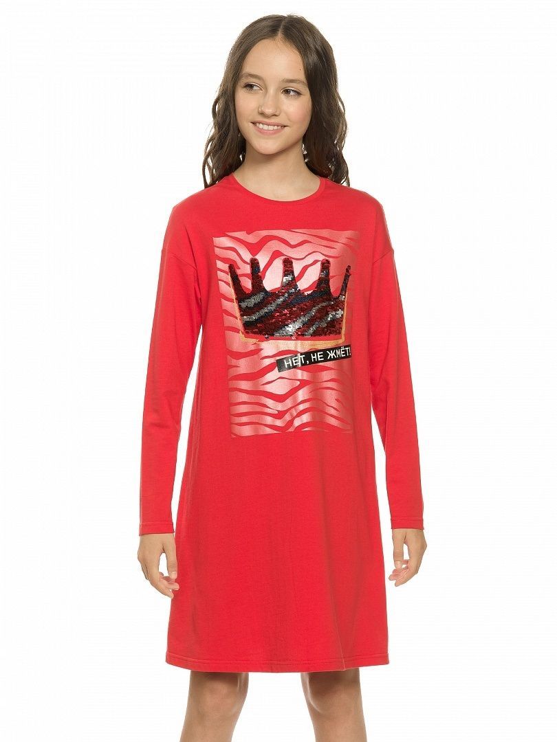 Состав: 100%хлопок Платье свободного объёма, силуэт трапеция. Glossy rubber принт с розовым металликом и золотым глиттером. Корона из переворачивающихся пайеток.