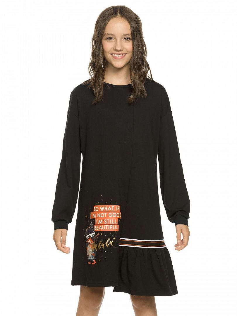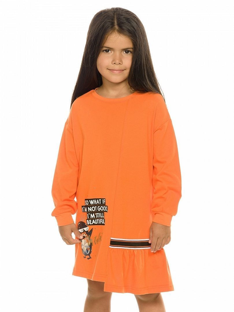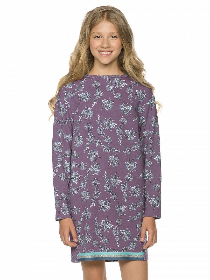 Состав: 95%хлопок 5%эластан Платье для девочек из футера с начёсом. Новинка! Свободный объём, О-образный силуэт, спущенная линия плеча, боковые швы переведены на перед, по низу центральной части изделия эластичная трикотажная тесьма с люрексом.