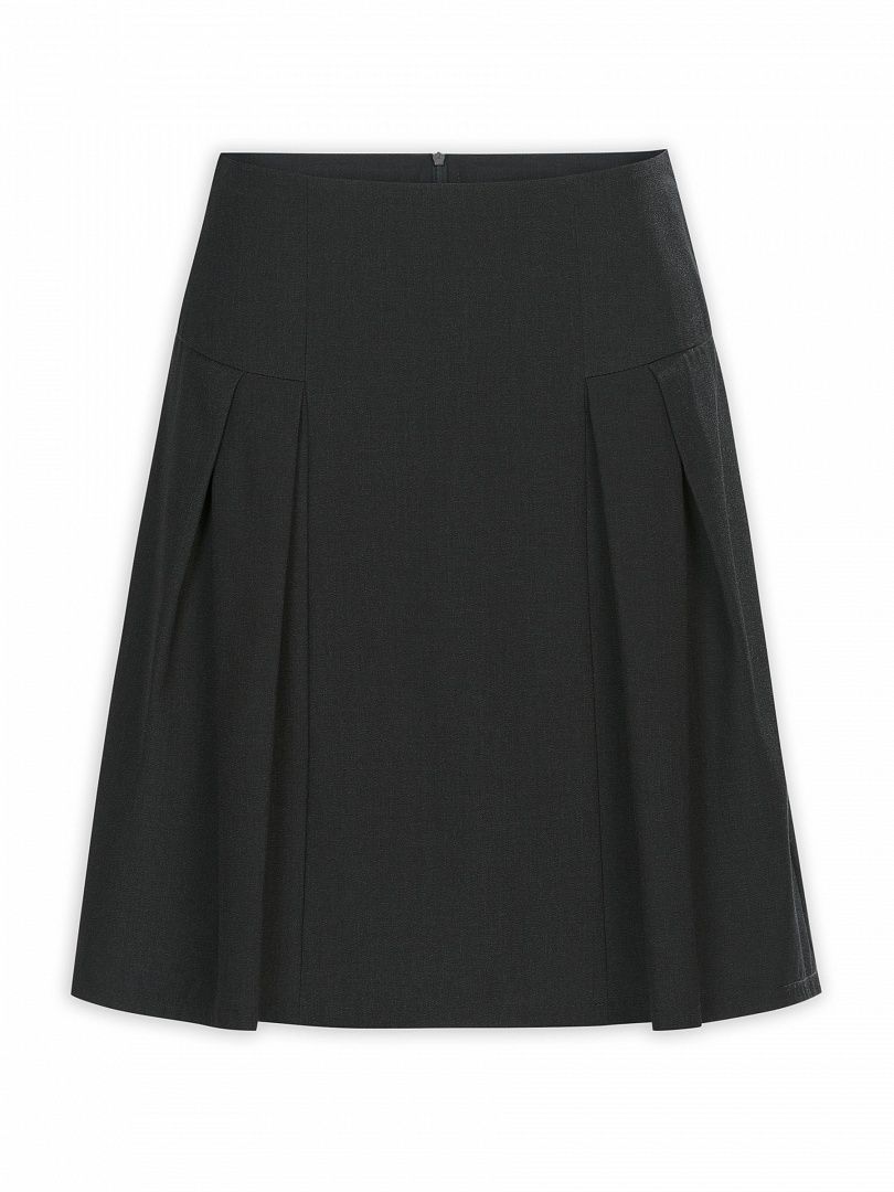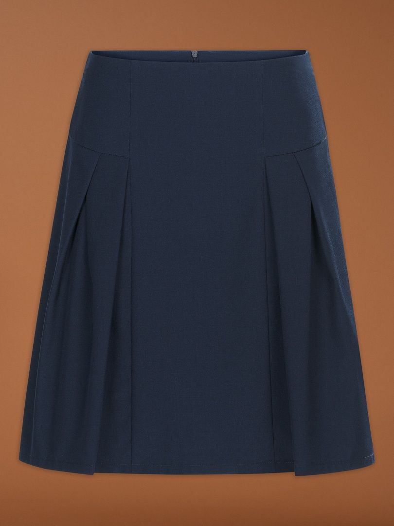 Состав: 52%вискоза 48%полиэстер Юбка для школы в новом нестандартном дизайне для тех, кому наскучили традиционные формы. Сложный крой переда с наклонными складками по бокам создает дополнительный объем, а центральная часть изделия расширяется книзу, чтобы не стеснять движения. Сзади юбка застегивается на потайную молнию, а в поясе предусмотрен внутренний эластик, позволяющий регулировать размер изделия до нескольких сантиметров.