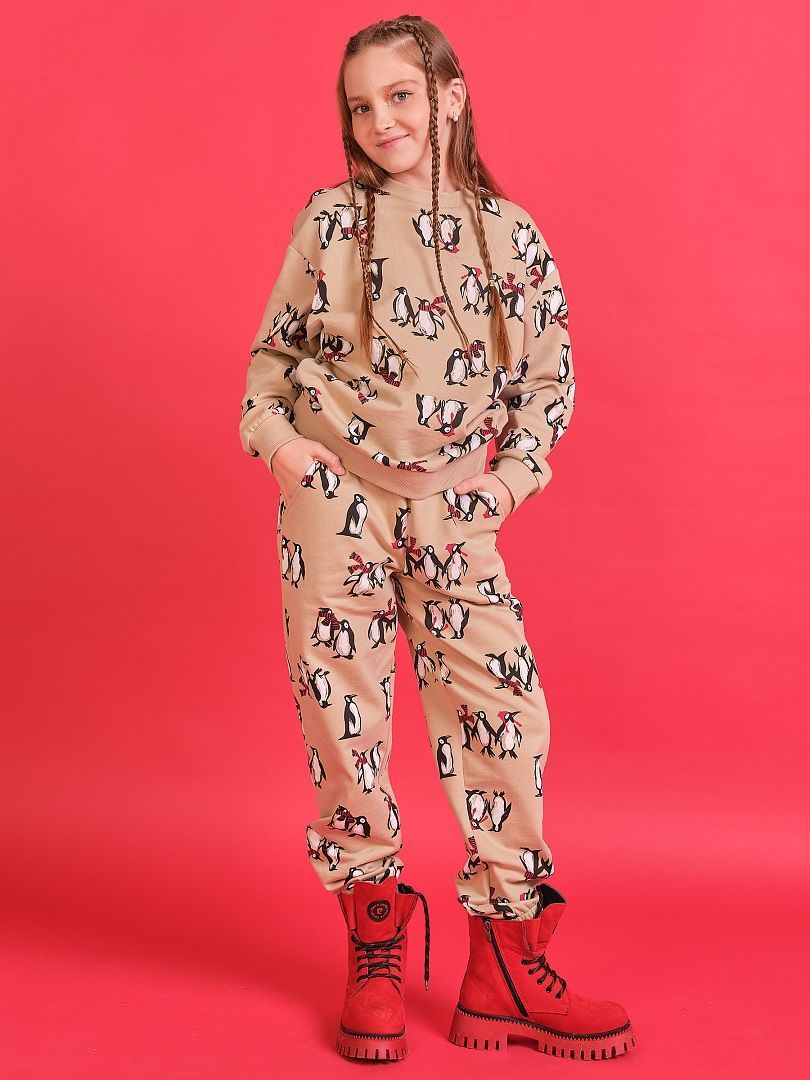 Состав: верх: 100%хлопок, низ: 100%хлопок Теплый костюм для девочки с начесом. Оверсайз силуэт дарит свободу движений и комфорт. Яркий принт (рисунок) придаст настроению и создаст уют. Костюм утепленный для девочки выполнен в оловер принт - самый тренд сезона!В составе ткани качественный 100% хлопок, поэтому костюм из футера с начесом для девочки отлично пропускает воздух, легкое и мягкое, долго сохраняет форму даже после множества стирок, в меру эластичный и износостойкий, практичный для регулярного применения. Материал приятный для соприкосновения с кожей.Костюм двойка для девочки состоит из свитшота и брюк умеренного объёма. В поясе и по низу брюк мягкие и широкие резинки — не перекручиваются и не давят. Манжеты и отделка горловины из эластичной рибаны — они не растягиваются, джемпер удобно надевать и снимать.Подходит для кругологодичного применения: летом, зимой, весной, осенью (демисезон и в межсезонье).Одинаково практично для повседневной носки, в домашних условиях и для сна, для занятий спортом и фитнесом, путешествий и туризма, во время активных игр, прогулок с друзьями и родителями. В таком ты понимаешь - это твое, это топ!Можно подарить дочери и внучке на День рождения, 8 марта, Новый год и Рождество. Помните о правильном уходе за изделием: рекомендуется стирать при температуре не выше 30 °C, без предварительного замачивания, с изнанки. Это поможет сохранить качество и цвет пижамы на длительное время.Не забывайте о выборе правильного размера. Используйте таблицу размеров на фотографии, чтобы выбрать подходящий вариант для вашей девочки.Обратите внимание, что цвет товара на экране вашего устройства может отличаться от реального.