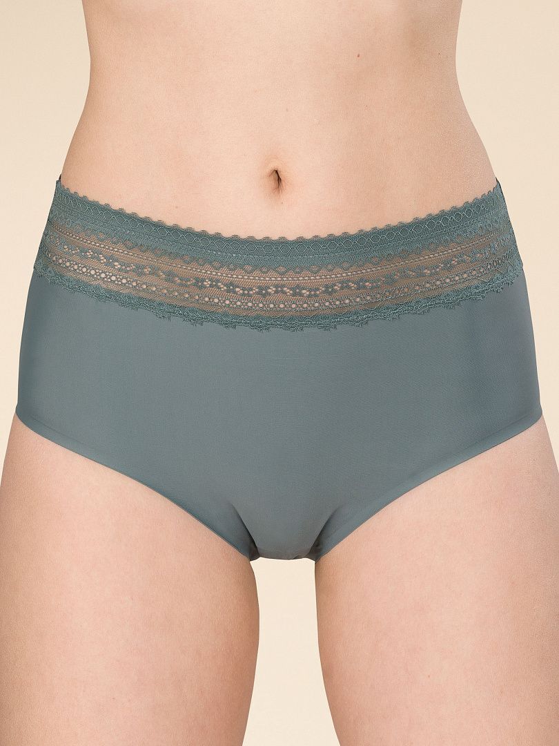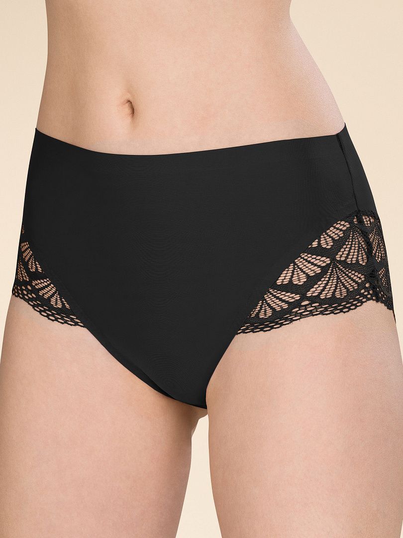 Состав: 92%полиамид 8%эластан, вставка: 85%полиамид 15%эластан Женские трусы-шорты с высокой посадкой. Изготовлены по бесшовной технологии с минимум швов. Кромки по ноге и по талии подогнуты и приклеены, хлопковая приклеенная ластовица. Нежное цветочное кружево придает модели утонченный вид. Продуманный крой трусов создает изящный силуэт. Модель оценят те, кто ищет незаметное и невесомое белье на каждый день или особого случая.