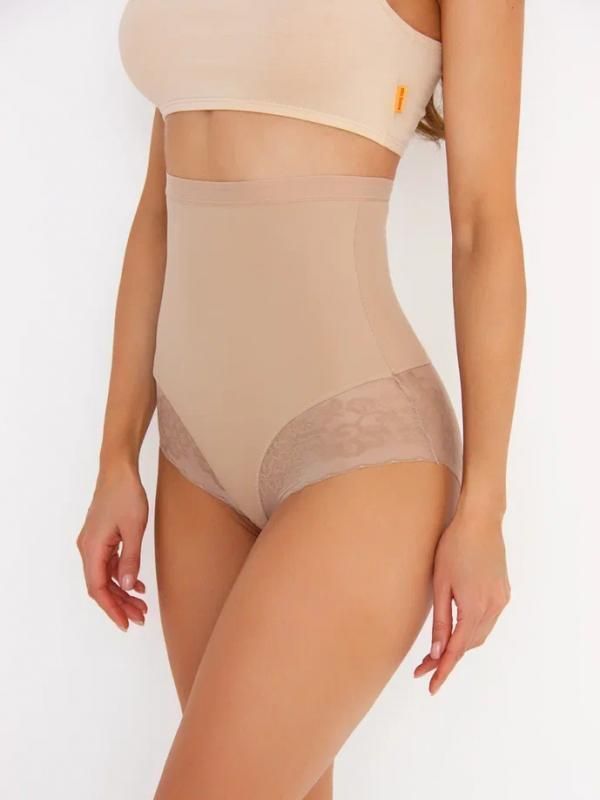 Состав: 87% полиамид, 13% эластан. Высокие кружевные утягиващие трусы. Средняя коррекция