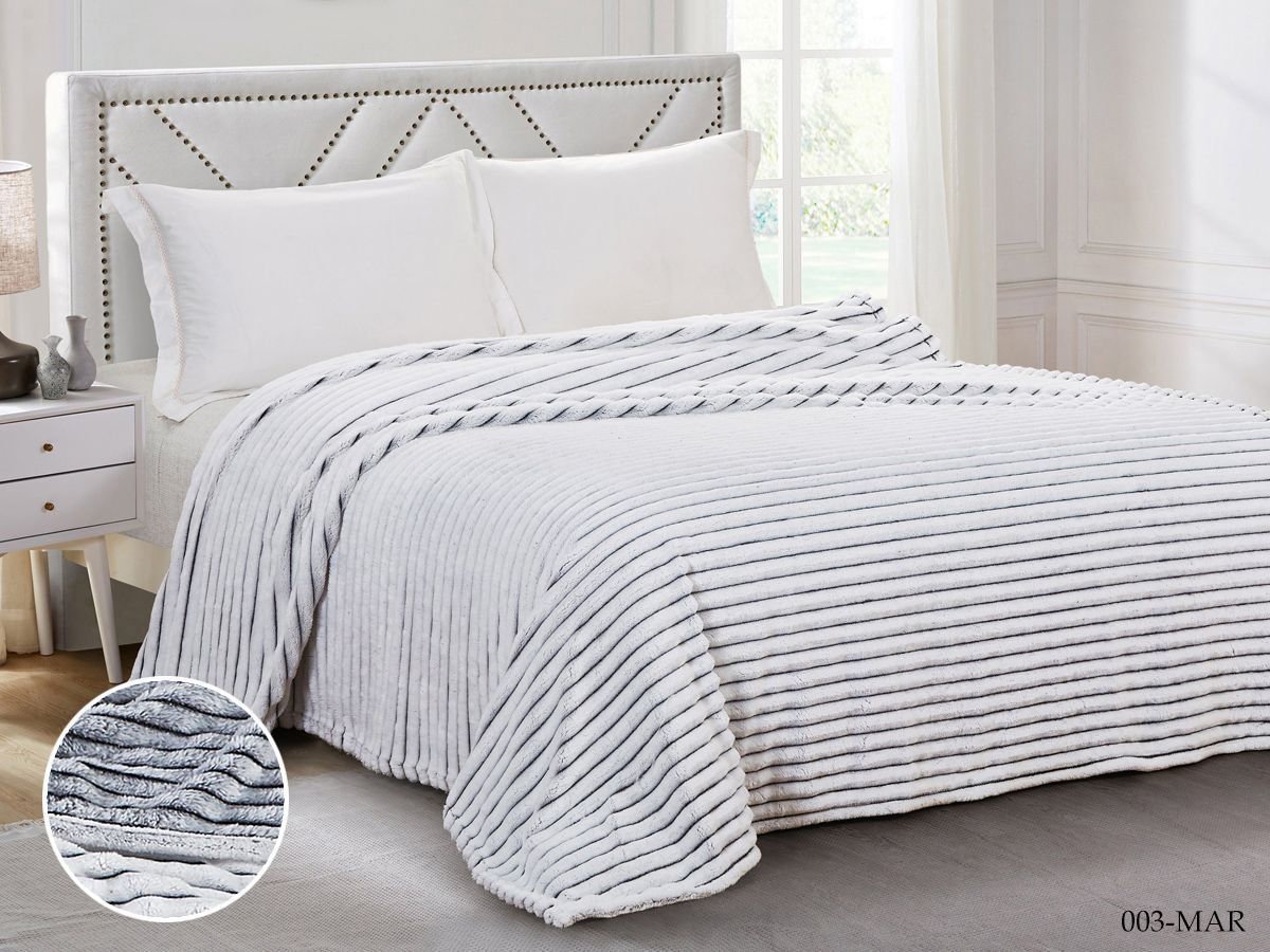 Плед Cleo "Marmari" велсофт двуспальный 180*200, 180/001-MAR, Полоска, Серый