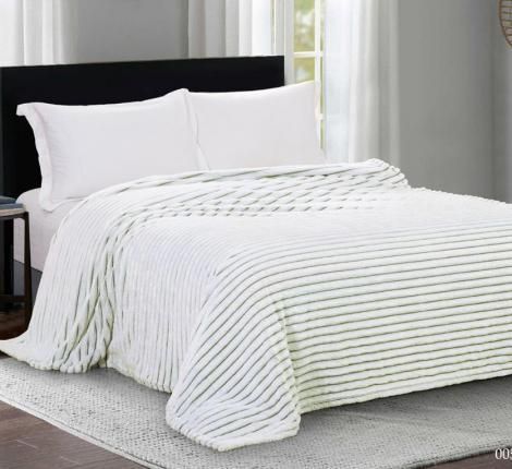 Плед Cleo "Marmari" велсофт двуспальный 180*200, 180/005-MAR, Полоска, Зеленый