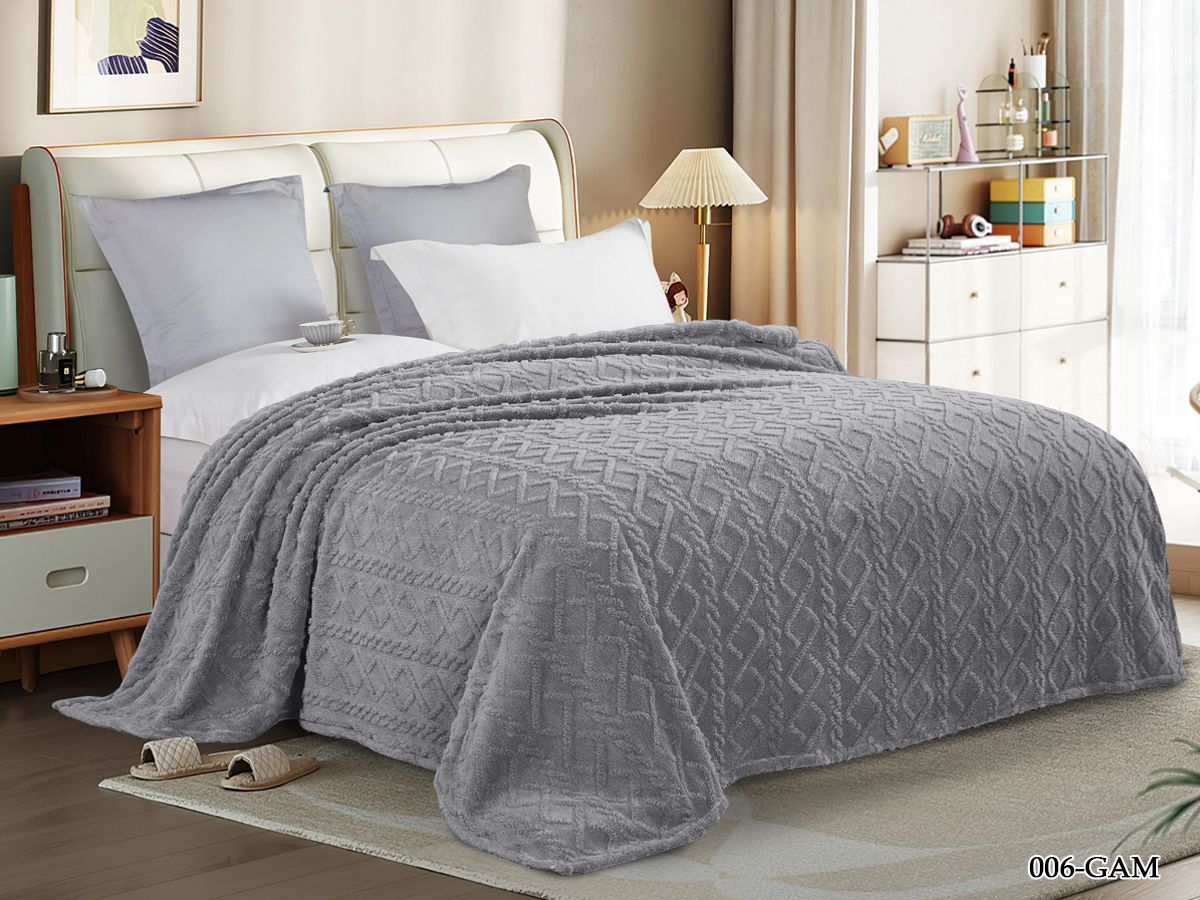 Плед Cleo "Gammi" велсофт двуспальный 180*200, 180/006-GAM, Геометрия, Серый