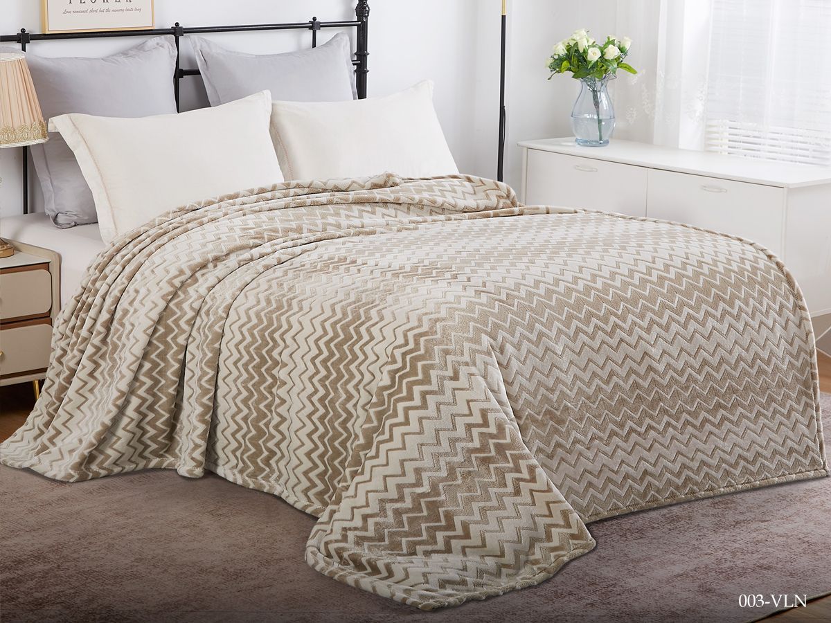 Плед CL HOME "Volna" велсофт двуспальный 180*200, 180/003-VLN, Зиг-заг, Бежевый