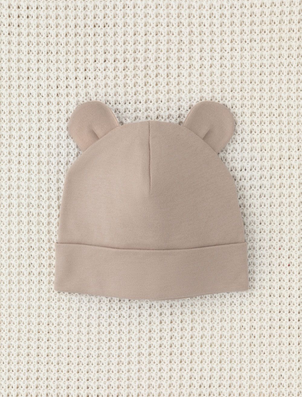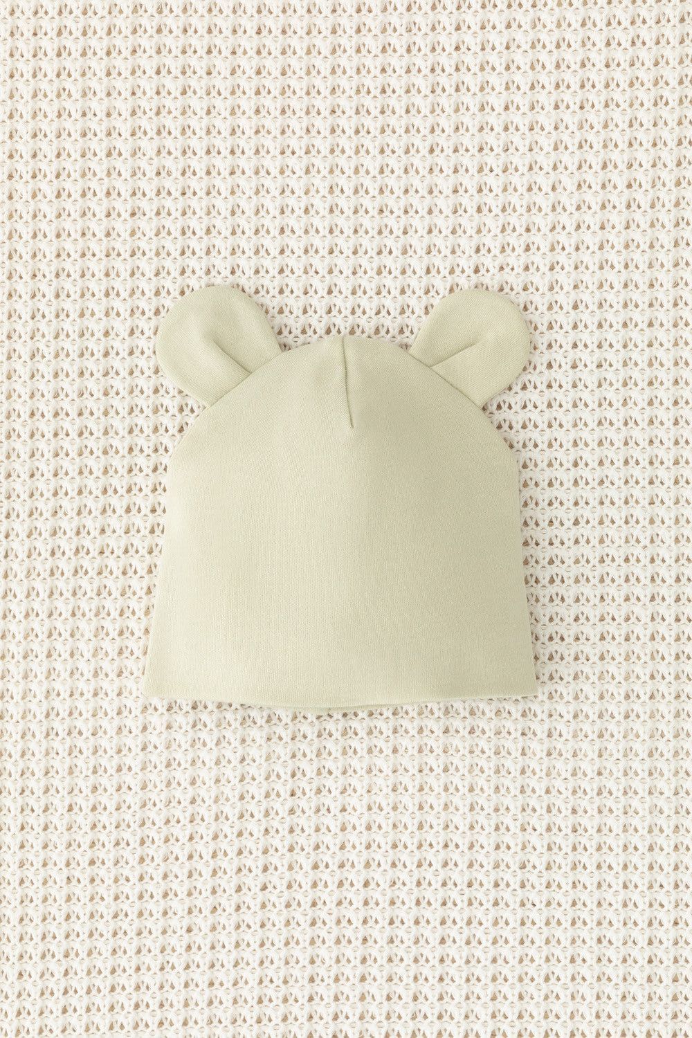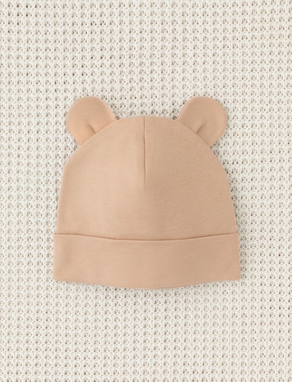 Состав: 100% хлопок. Шапка с отворотом для новорождённых из мягкого эластичного трикотажа интерлок, произведённого из натурального хлопка. Украшена декоративными ушками. Все трикотажные полотна производятся в соответствии с нормами Швейцарского сертификата ЭкоТекс.