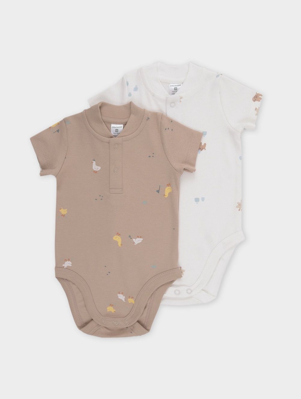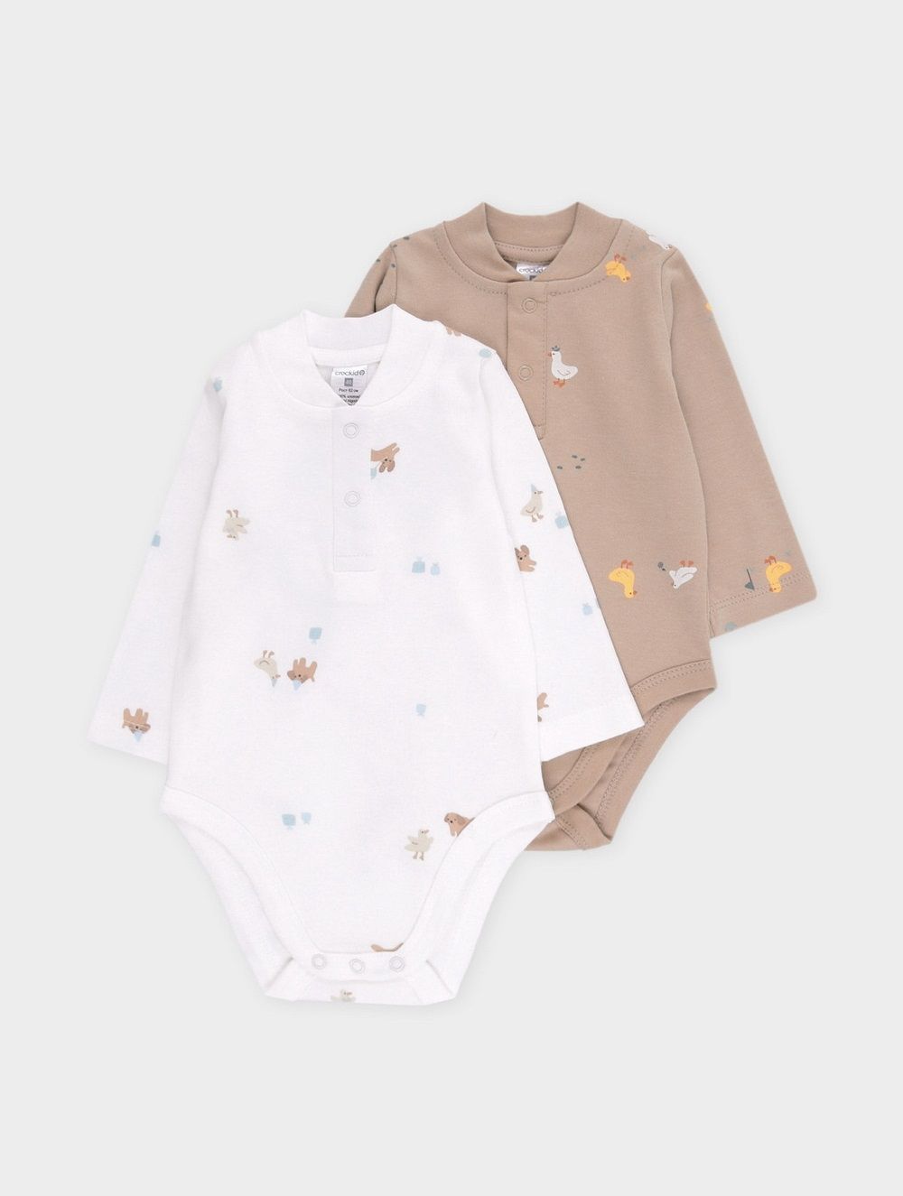 Состав: 100% хлопок. Боди для новорождённых из мягкого эластичного трикотажа, произведённого из натурального хлопка. В упаковке 2 штуки. Застёгиваются на кнопки спереди и по низу изделий. Оригинальная набивка выполнена из стойких гипоаллергенных текстильных красителей. Все трикотажные полотна производятся в соответствии с нормами Швейцарского сертификата ЭкоТекс.
