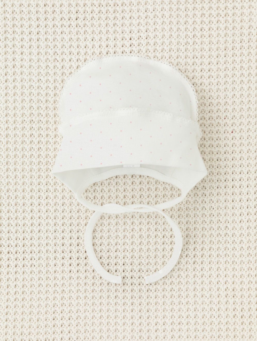 Состав: 100% хлопок. Шапочка на завязках для новорождённых. Изготовлена из мягкого эластичного трикотажа интерлок, произведённого из натурального хлопка. Все трикотажные полотна производятся в соответствии с нормами швейцарского сертификата ЭкоТекс.