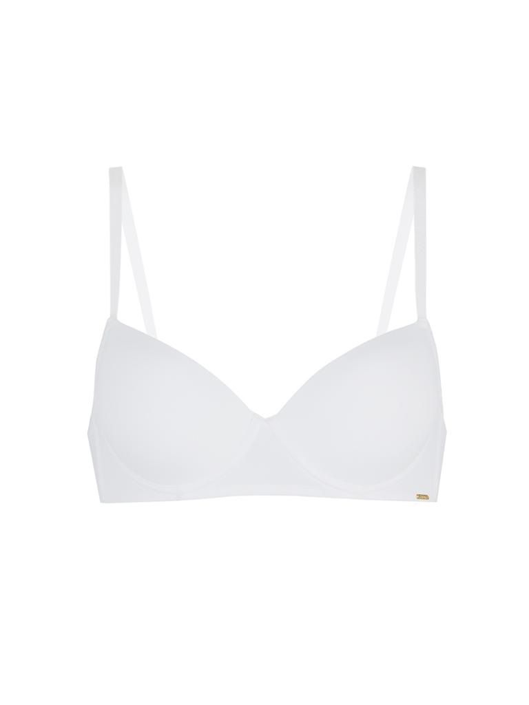 Состав: 85% полиамид/15% эластан. Гладкий базовый бюстгальтер Padded bra с формованными чашками на каркасах, с push-up во всех размерх и боковыми корсетными вставками.. Застежка на 2 крючка и 3 ряда петель.Эластичные бретели можно откорректировать по длине. Металлический крючок для X-фиксации бретелей на спине. Ширина бретелей на объемы 70, 75 и 80 см с чашками А,В,С - 10мм, на объемы 75, 80 с чашками D и размер 85С - 15 мм. Изделие украшают брендированные бретели и металлическая капелька с первой буквой натменования бренда
