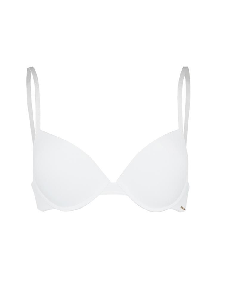 Состав: 85% полиамид/15% эластан. Гладкий базовый бюстгальтер padded bra с формованными чашками на каркасах, с push-up во всех размерх и боковыми корсетными вставками. Застежка на 2 крючка и 3 ряда петель.Эластичные бретели можно откорректировать по длине. Металлический крючок для X-фиксации бретелей на спине. Ширина бретелей на объемы 70, 75 и 80 см с чашками А,В,С - 10мм, на объемы 75, 80 с чашками D и размер 85С - 15 мм. Изделие украшают брендированные бретели и металлическая капелька с первой буквой натменования бренда