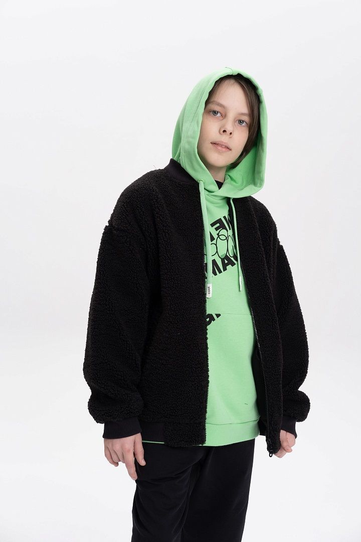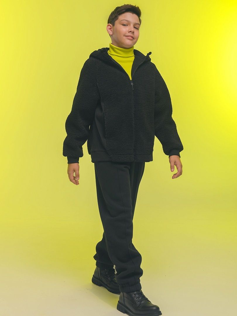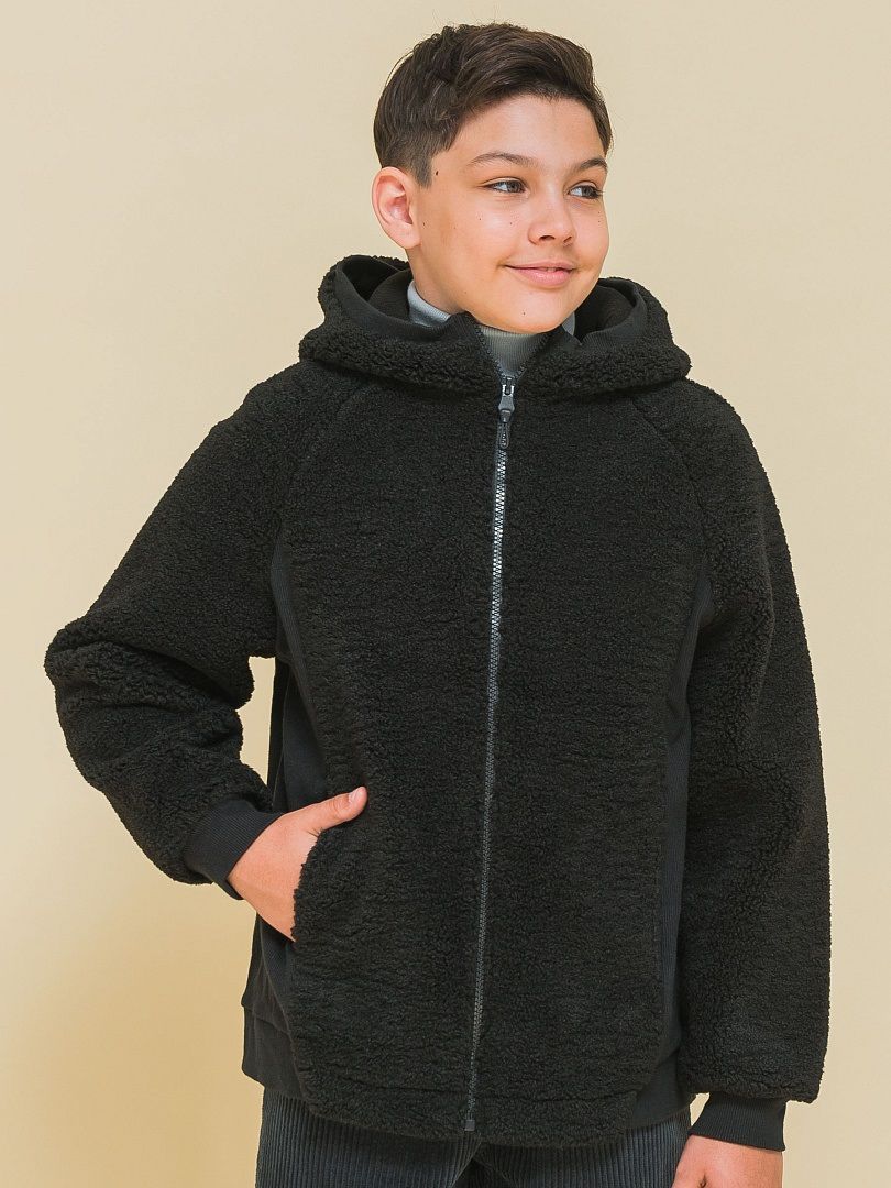 Состав: 100%полиэстер, вставка: 95%хлопок 5%эластан Детская куртка на мальчика выполнена из мягкого бербер-флиса (фактура «барашка»). Куртка актуального оверсайз-силуэта с рукавами кроя реглан подарит ребёнку комфорт и не будет сковывать его движений. По бокам оригинальные вставки из плотной эластичной рибаны. Сочетание материалов с разной фактурой — один из трендов сезона. Капюшон защищает ребёнка от холода и ветра. Оверсайз-куртка удобно застёгивается на молнию по переду, вверху молнии ограничитель для безопаного застёгивания. В швах по переду расположены боковые карманы. Окантовка капюшона, манжеты рукавов и частично манжета по низу изделия выполнены из эластичной рибаны — она на 95% состоит из качественного хлопка. Эластан помогает рибане не растягиваться, сохранять отличную форму долго. Худи однотонное, без принта. Модель неприхотлива в уходе. Одежда из флиса тёплая, лёгкая, мягкая, просто стирается и быстро сохнет, не выгорает и не скатывается, сохраняет прекрасную форму надолго. Толстовка детская выполнена в универсальном чёрном цвете. Она отлично сочетается с различными брюками. Размерная линейка: 1 (86); 2 (92); 3 (98); 4 (104); 5 (110); 6 (116); 7 (122); 8 (128); 9 (134); 10 (140); 11 (146). Мягкая куртка подходит малышам, мальчикам дошкольного и младшего школьного возраста, а также подросткам. Его можно носить в детский сад, школу, на прогулки, оно идеально для активного отдыха и спорта, а также для дома. Подходит для круглогодичной носки: прохладным летом, осенью, зимой, весной и демисезон. Стильный и практичный подарок сыну, брату, внуку или племяннику на Новый год и любой другой праздник.