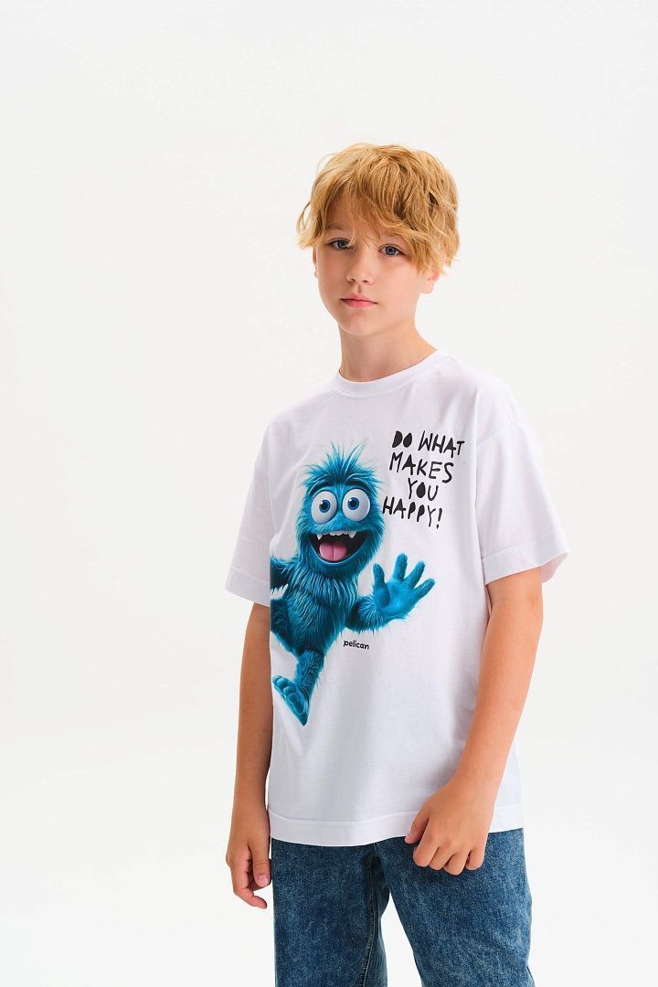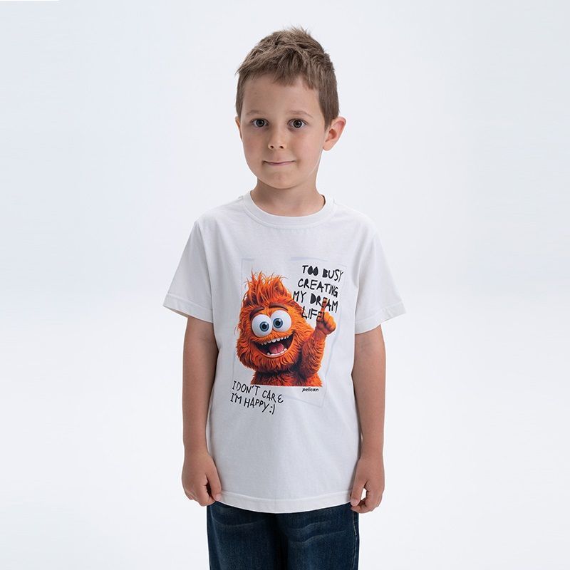 Состав: 100%хлопок Футболка для мальчика прямого кроя умеренного объема - это идеальный выбор для активного ребенка. Вырез горловины обработан эластичной тканью — она прекрасно держит форму, не растягивается, при этом ребёнку удобно надевать и снимать футболку. Футболка с фотопринтом и надписями. Перевод надписей: Сделай это в эпичном стиле вместе с Пеликан. ЭКСТРА ВЕСЕЛЬЕ. Будущее для экстраординарных детей. Почувствуй момент. Не переставай исследовать. Спортивная футболка подходит как для подростков так и для малышей в детский сад. Подходит для любого времени года.