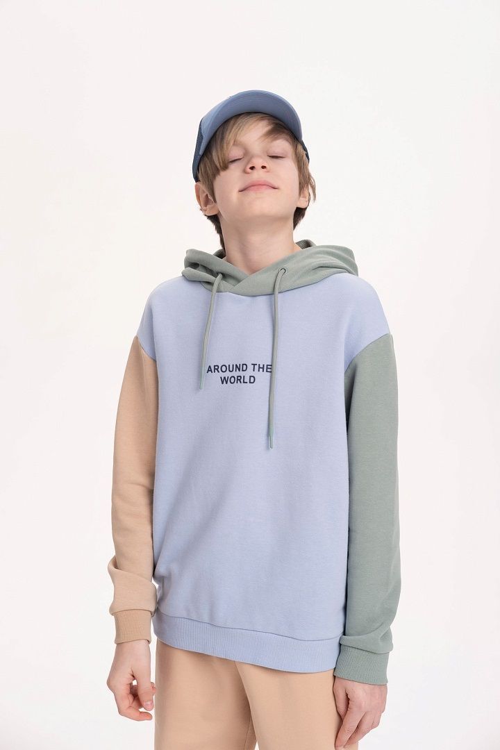 Состав: 87%хлопок 13%полиэстер Худи для мальчика без начеса – актуальная вещь в любом сезоне, будь то весна, лето или осень. Кофта спортивная для мальчика выполнена из плотного футера-петля, который отлично согревает в прохладную погоду и при этом хорошо пропускает воздух – ребенок активно двигается, играет, не потеет. Толстовка свободного покроя оверсайз со спущенным плечом, углубленной проймой. Рукава а также низ изделия на манжете из рибаны. Кофта без карманов. Капюшон с регулировкой объема. Пайта для мальчика выполнена в трех цветах. По переду изделие украшено выпуклым резиновым принтом с надписью. Перевод надписи "around the world" - вокруг света. Размерный ряд подходит как для малышей так и для подростков.
