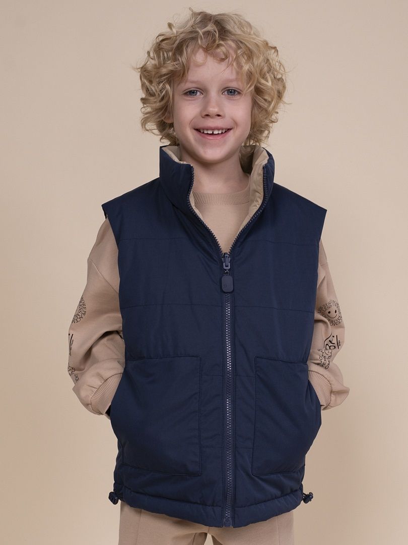 Состав: 100%полиэстер+мембрана, подклад: 100%полиэстер+мембрана, утеплитель: 100%полиэстер Жилет для мальчика – двусторонняя стеганая модель на синтепоне с мембраной и отталкивающим влагу покрытием. Незаменимый демисезонный вариант на весну и осень с температурным режимом +5 °C. Верхняя одежда для детей отлично защищает от ветра и осадков, позволяя активно двигаться, заниматься спортом и весело играть как в городе, так и на природе. Жилет для мальчика утепленный представлен для возраста садика и школы. Востребованная модная модель: сочетает в себе комфорт и утилитарность - понравится малышам, школьникам, подросткам. Жилет для мальчика - одежда на мембране с подкладом и утеплителем из 100% полиэстера. Мембранная ткань и водоотталкивающее покрытие «Durable Water Repellent» (DWR) хорошо защищает нижние слои одежды от намокания. Структура мембранной ткани позволяет коже дышать – ребенку тепло и уютно. Полиэстер сохраняет первоначальный внешний вид даже при активной носке. Ткань устойчива к износу, воздействиям солнечных лучей и влаги. Жилет для мальчика теплый, хорошо сохраняет форму и красивый внешний вид. Модель не сковывает движений. Жилет для мальчика – утепленная одежда длиной до середины бедра в лаконичном дизайне с элементами минимализма, с хорошей защитой от непогоды и высокой износостойкостью. Высокий воротник стойка хорошо защищает от ветра. Два больших накладных кармана с боковым входом для рук. Объем понизу регулируется шнурком со стопперами. Брендированный пуллер с софт-тач эффектом приятен на ощупь и выглядит дорого. Модель цвете на выбор: черный, джинс, темно-синий. Натуральная, базовая природная цветовая палитра, легко сочетается с любой одеждой. Размерная линейка: 3 (98); 4 (104); 5 (110); 6 (116); 7 (122); 8 (128); 9 (134); 10 (140); 11 (146). Предусмотрена стирка при температуре +30 градусов.Жилет на мальчика - отличный подарок для сына, внука, братика, племянника, крестника!Выбирайте нужный размер по таблице размеров на фото.Цвет товара на экране вашего устройства может отличаться от цвета изделия вживую.