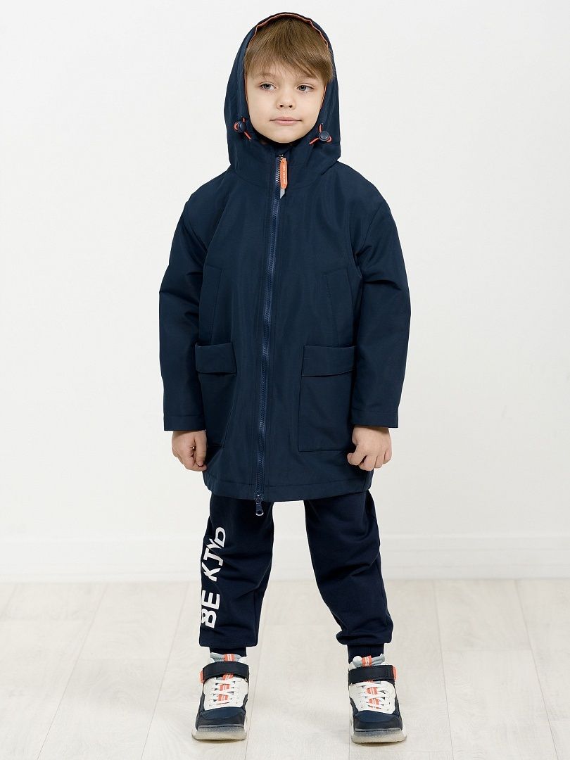 Состав: 100%полиэстер+мембрана, подклад: 100%полиэстер, утеплитель: 100%полиэстер Удлиненная утепленная куртка для мальчика прямого силуэта, увеличенного объема, с температурным режимом не ниже +5. Наличие в составе ткани мембраны делает куртку максимально комфортной при носке. МНОГОЗОНАЛЬНЫЙ ПОДКЛАД - уютный флис в капюшоне, воротнике и по стану; утеплитель из легкого синтепона (40 г/м2) в рукавах и ниже линии талии. ПОДКЛАД ИЗ ПОЛИЭСТЕРА необходим для лёгкого надевания изделия, обладает легкой степенью грязеотталкивания. Чтобы вашему ребенку было тепло и удобно. Водоотталкивающая пропитка (DWR) наносится на внешнюю поверхность ткани и задерживает грязь и влагу снаружи. Дополнительный слой на внутренней стороне ткани не позволяет ребенку промокнуть. Цельнокроеный 2-шовный капюшон с улучшенной посадкой по форме головы. Забрало капюшона застегивается на липу, регулировка капюшона эластичным шнуров с пластиковыми стопперами - можно менять объем. Внутренние воротник и манжеты из рибаны - приятно телу. Широкая ветрозащитная планка на липе. Центральная застежка на тракторную молнию с двумя пулл