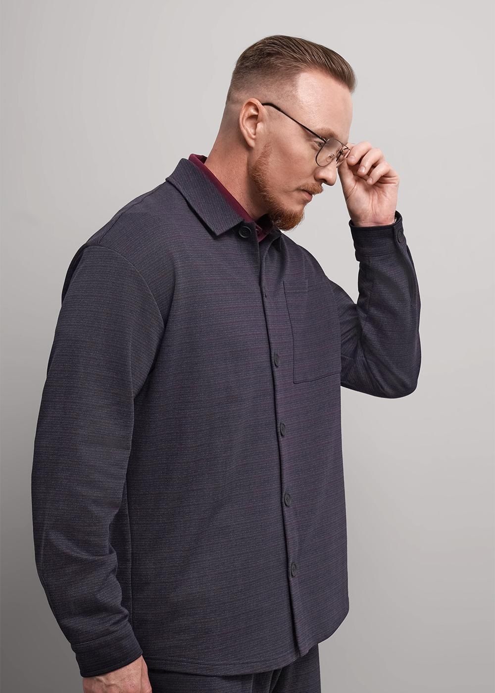 Состав: 100% хлопок. Мужская куртка-рубашка выполнена из трикотажного полотна, свободного силуэта с отложным воротником и застежкой на пуговицы. Модель дополнена нагрудным карманом и имиджевой фурнитурой. По низу рукава манжета. Отлично подойдет для работы и учебы.