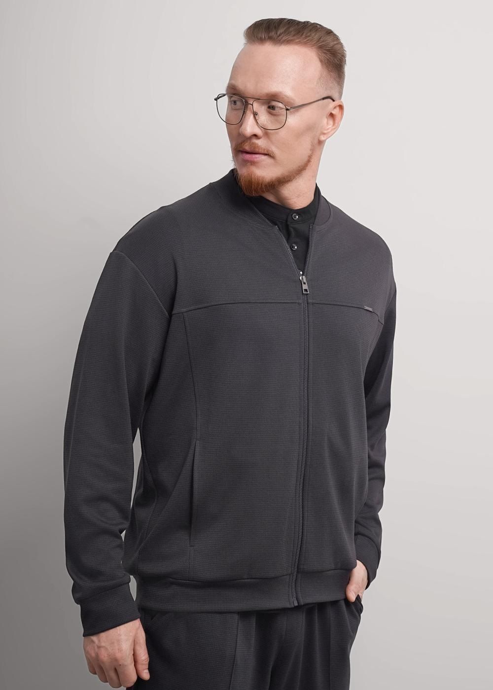 Состав: 72% полиэстер, 26% вискоза, 2% эластан. Мужской бомбер на молнии из жаккардового трикотажного полотна. Дизайн модели дополнен имиджевой фурнитурой. Стильное решение для похода на учебу или работу.