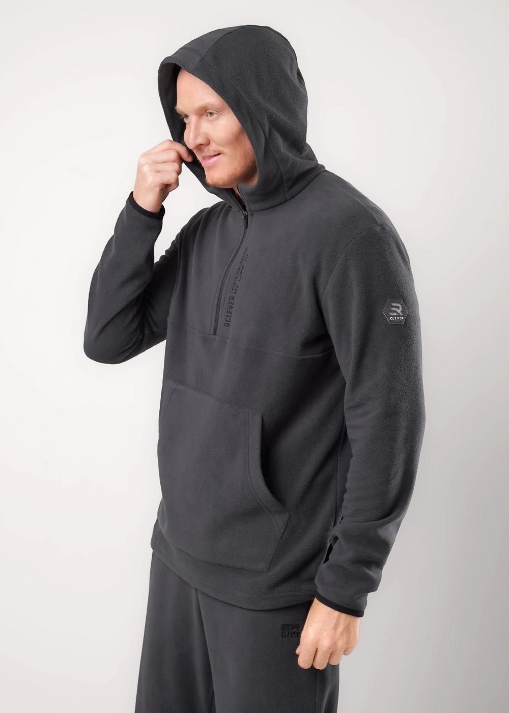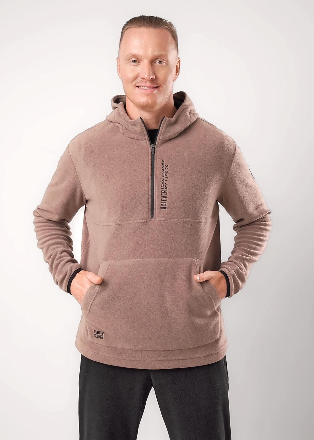 Состав: 100% полиэстер. Мужская толстовка выполнена из флиса. Модель с укороченной застежкой на молнию и вместительным карманом, так же дополнена имиджевой вышивкой. Прекрасно подойдёт для холодного времени года.