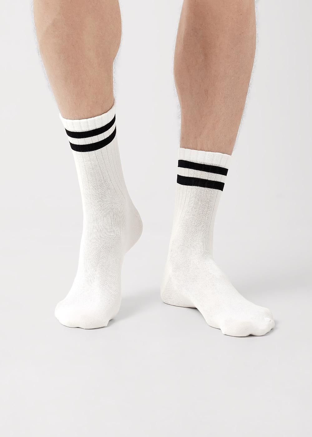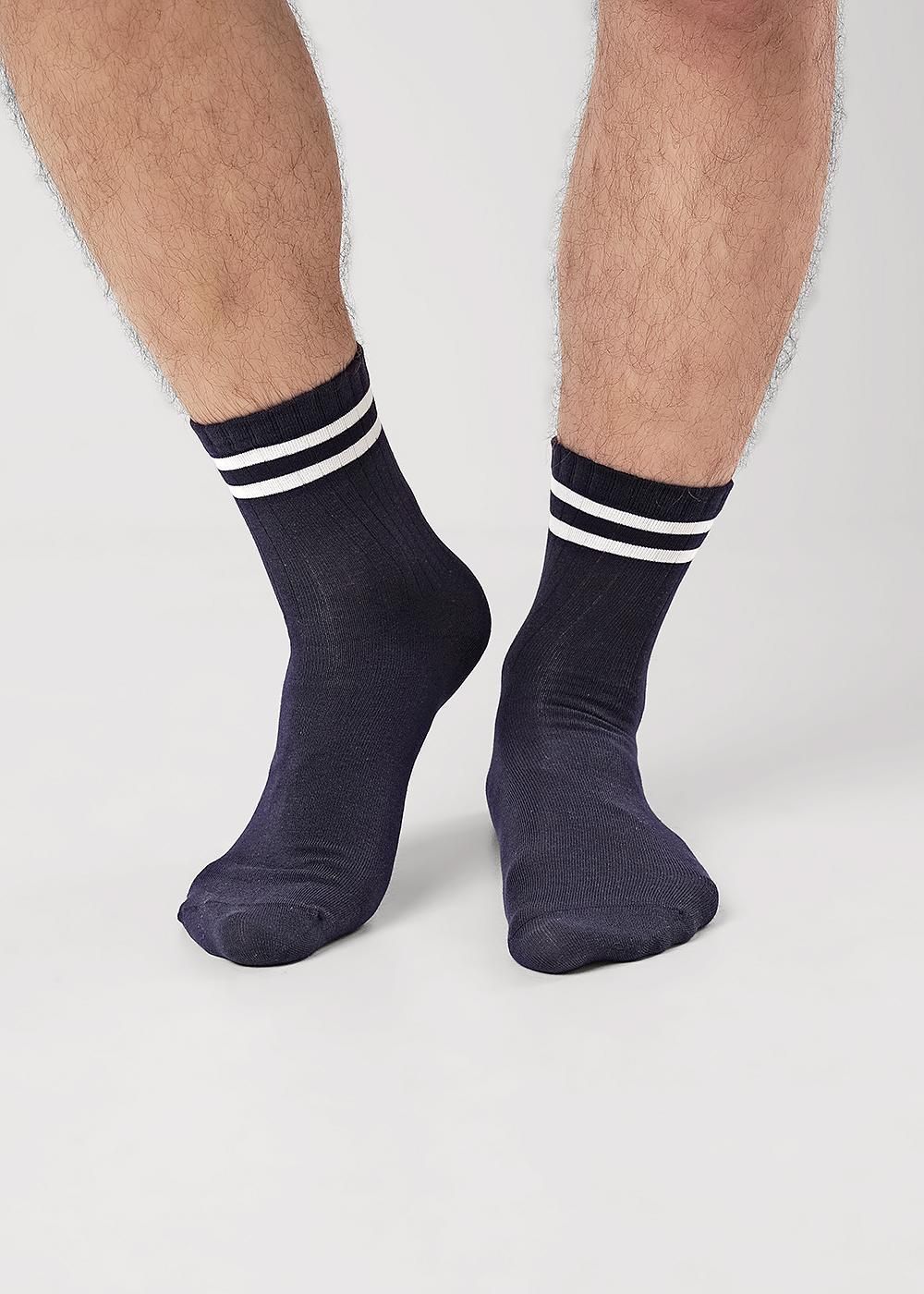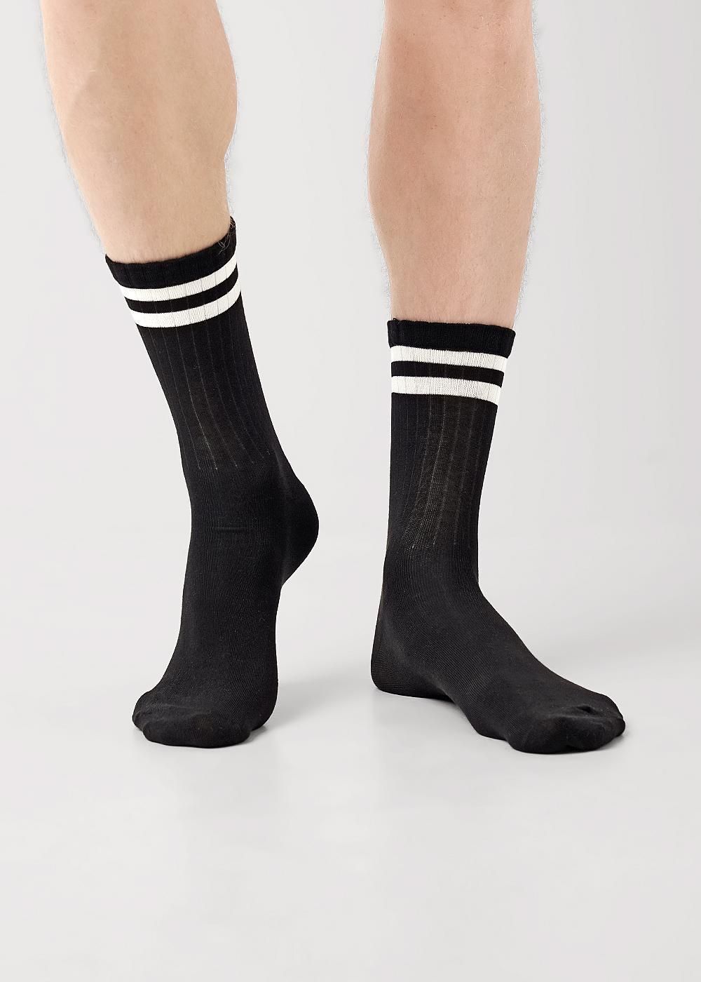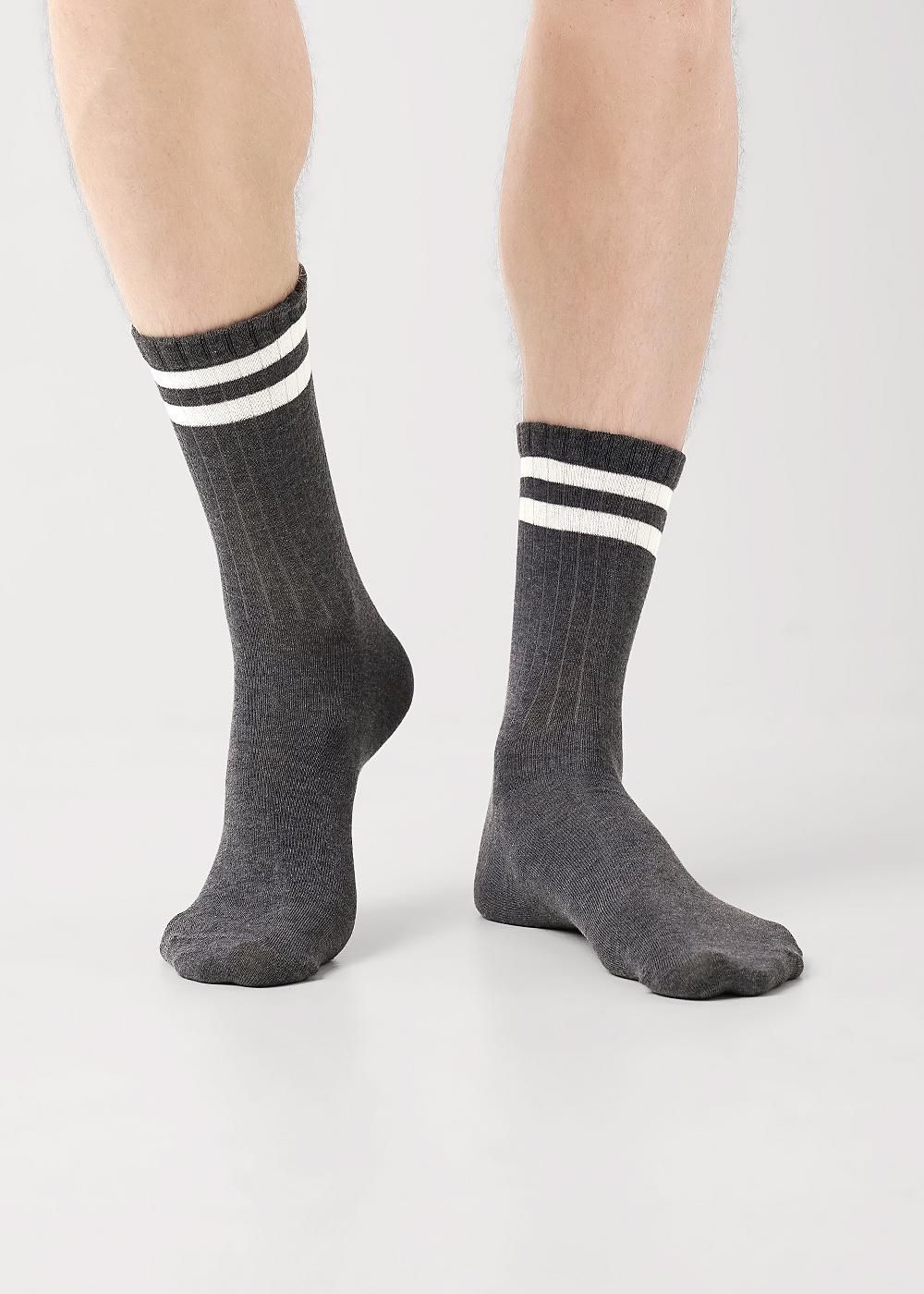 Описание: мужские носки с полосками на паголенке Состав: 70% хлопок, 25% полиамид, 5% эластан Страна: РОССИЯ
