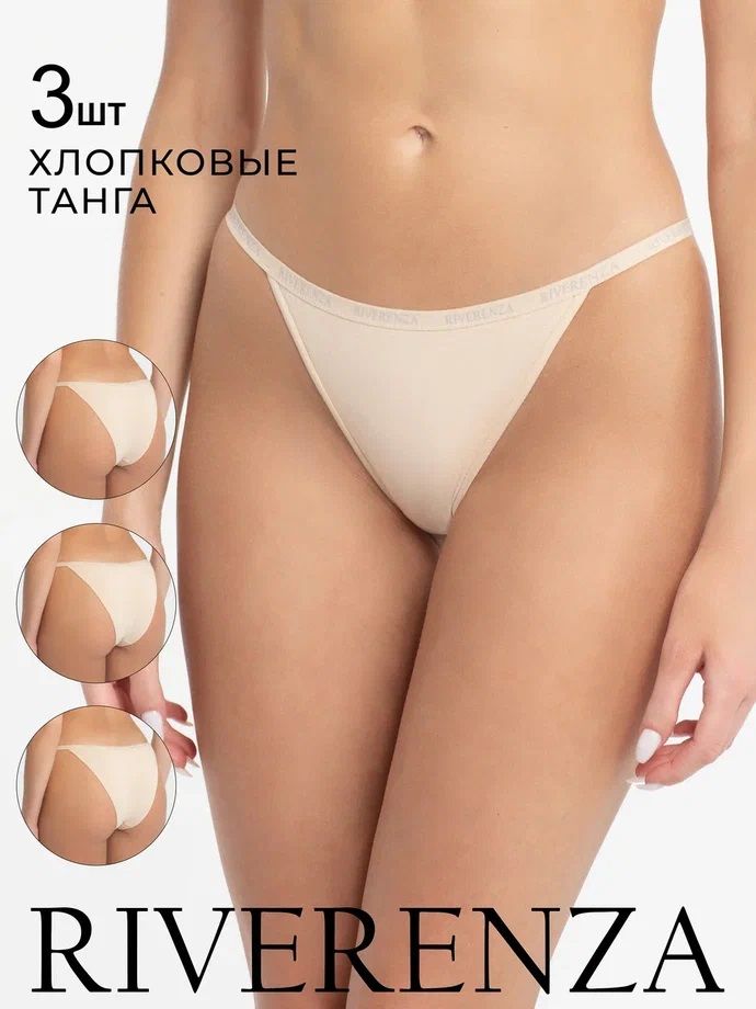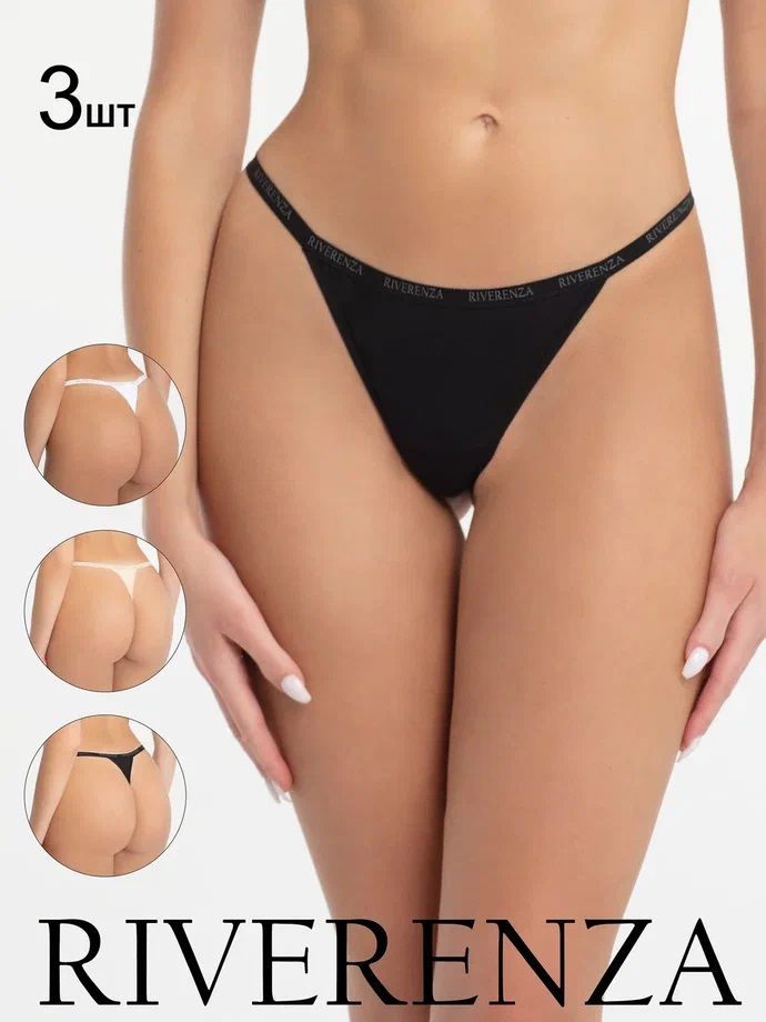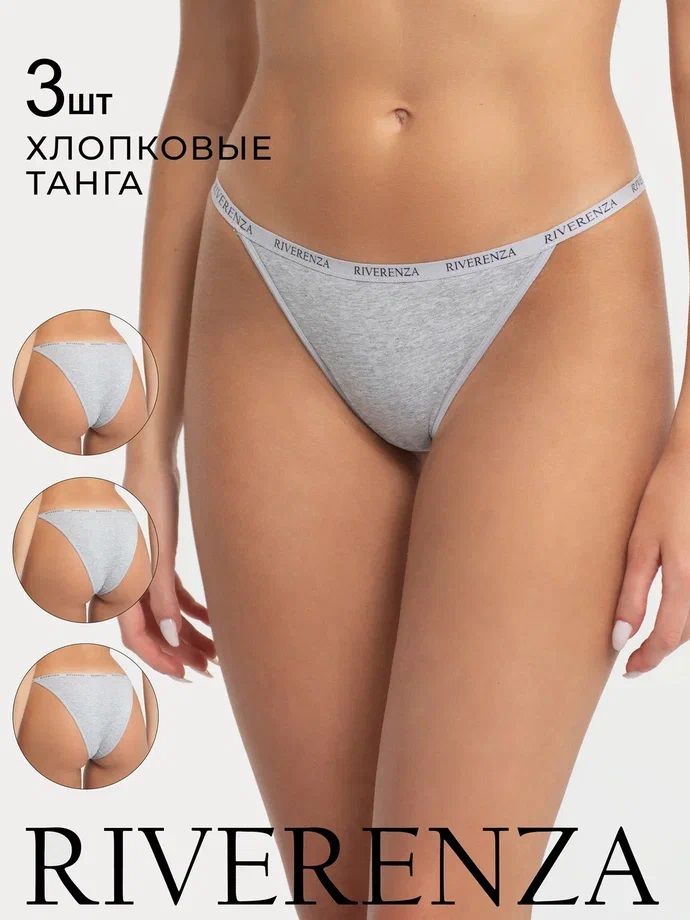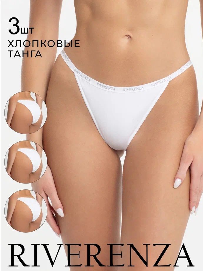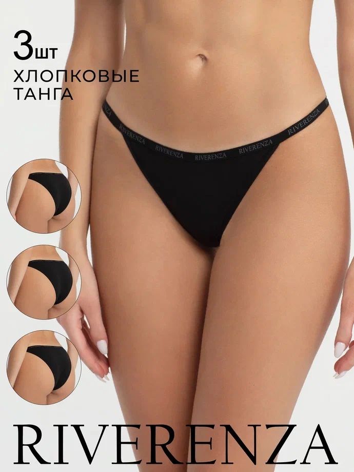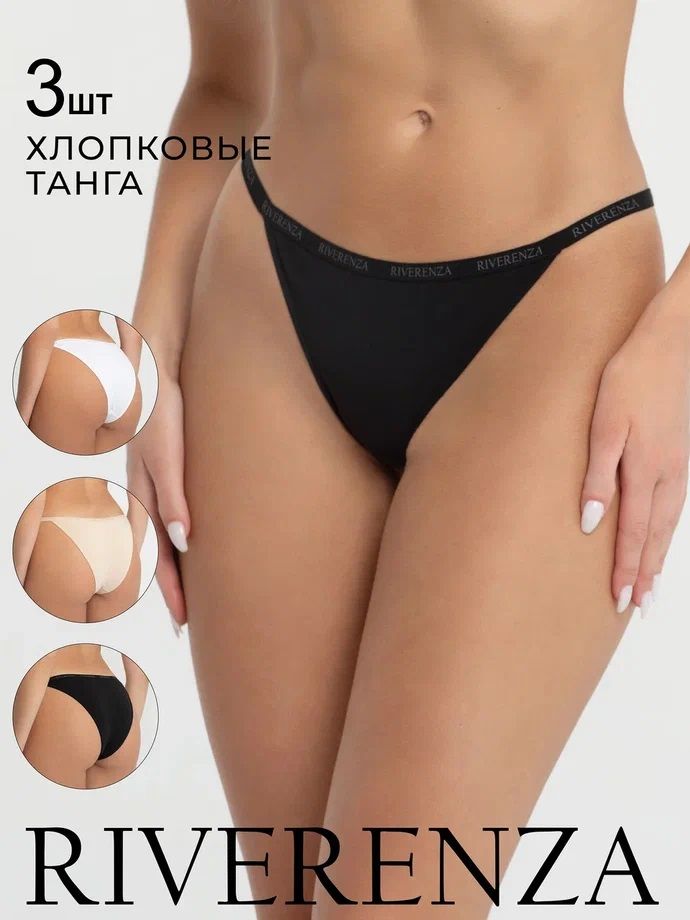Состав: 95% хлопок, 5% эластан. Трусы танга средней посадки с резинкой с логотипом бренда. Набор 3 штуки