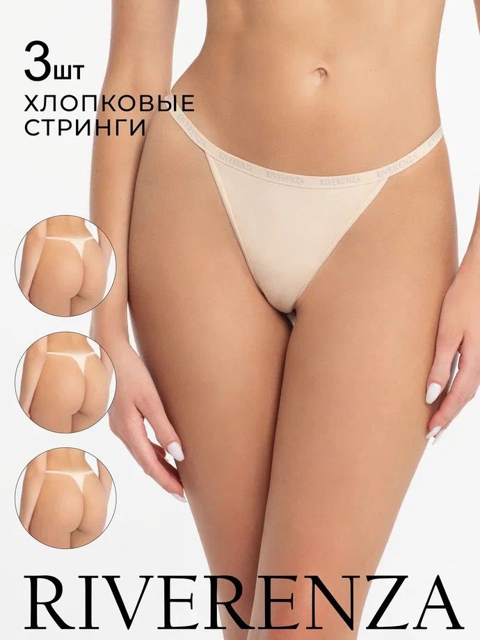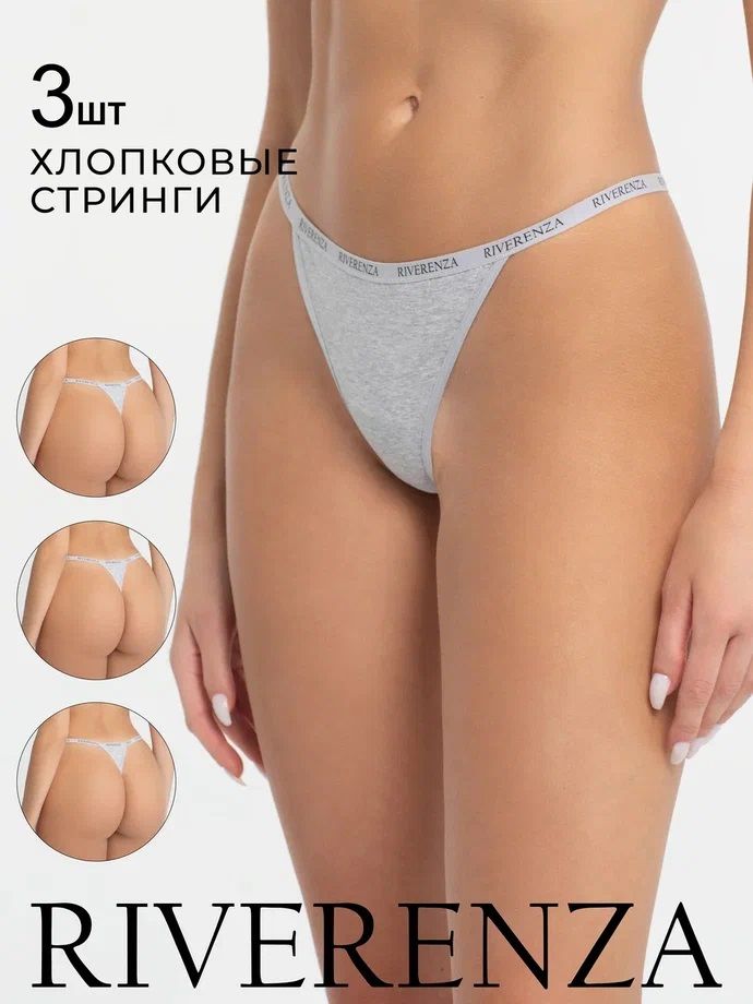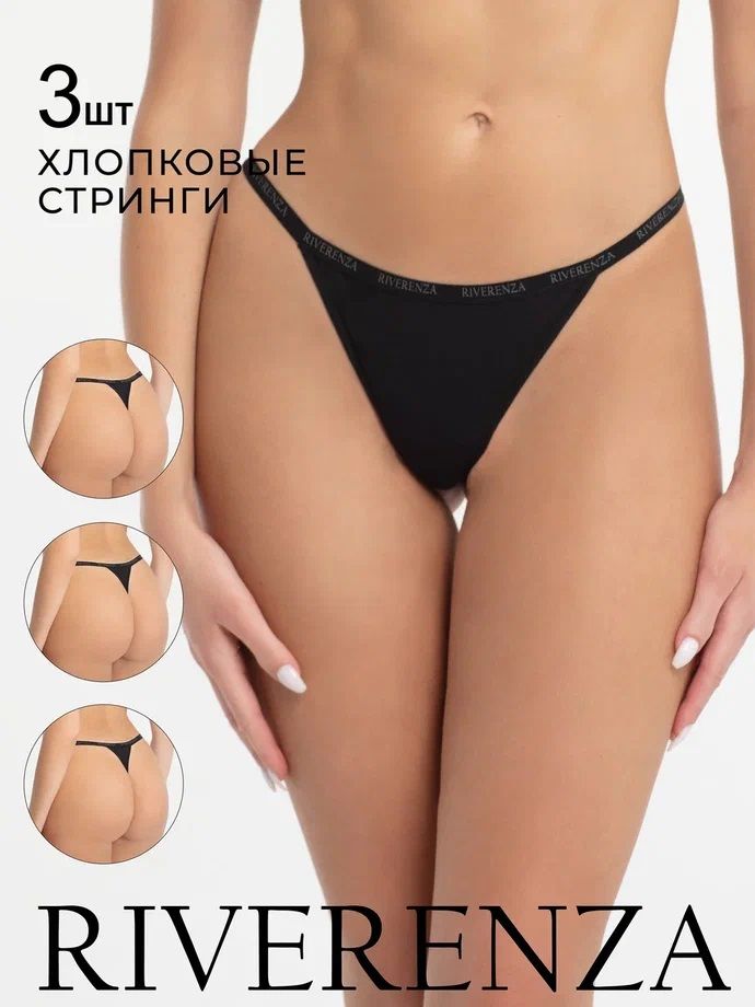 Состав: 95% хлопок, 5% эластан.Трусы стринги средней посадки с резинкой с логотипом бренда. Набор 3 шт.